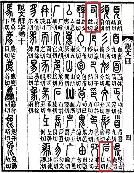 《说文解字》:“ 司,息兹切”,“后,胡口切”