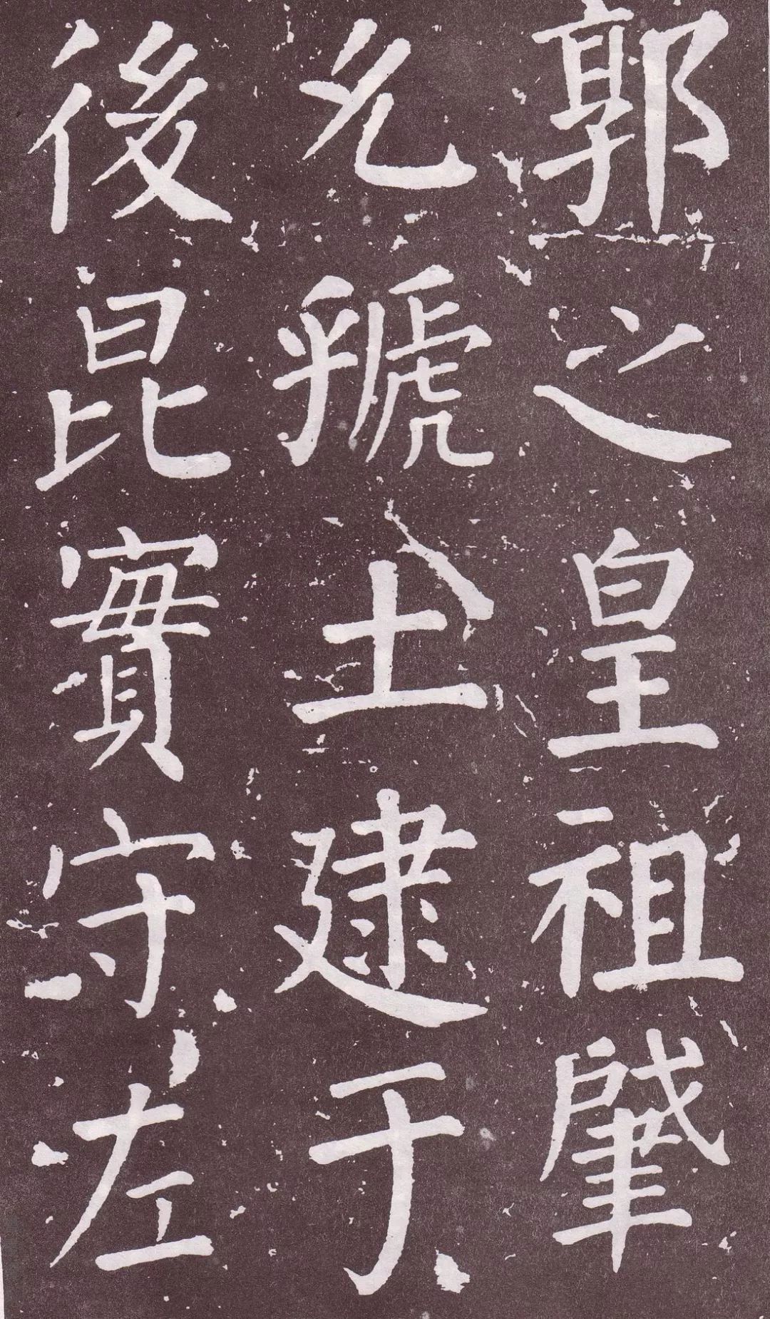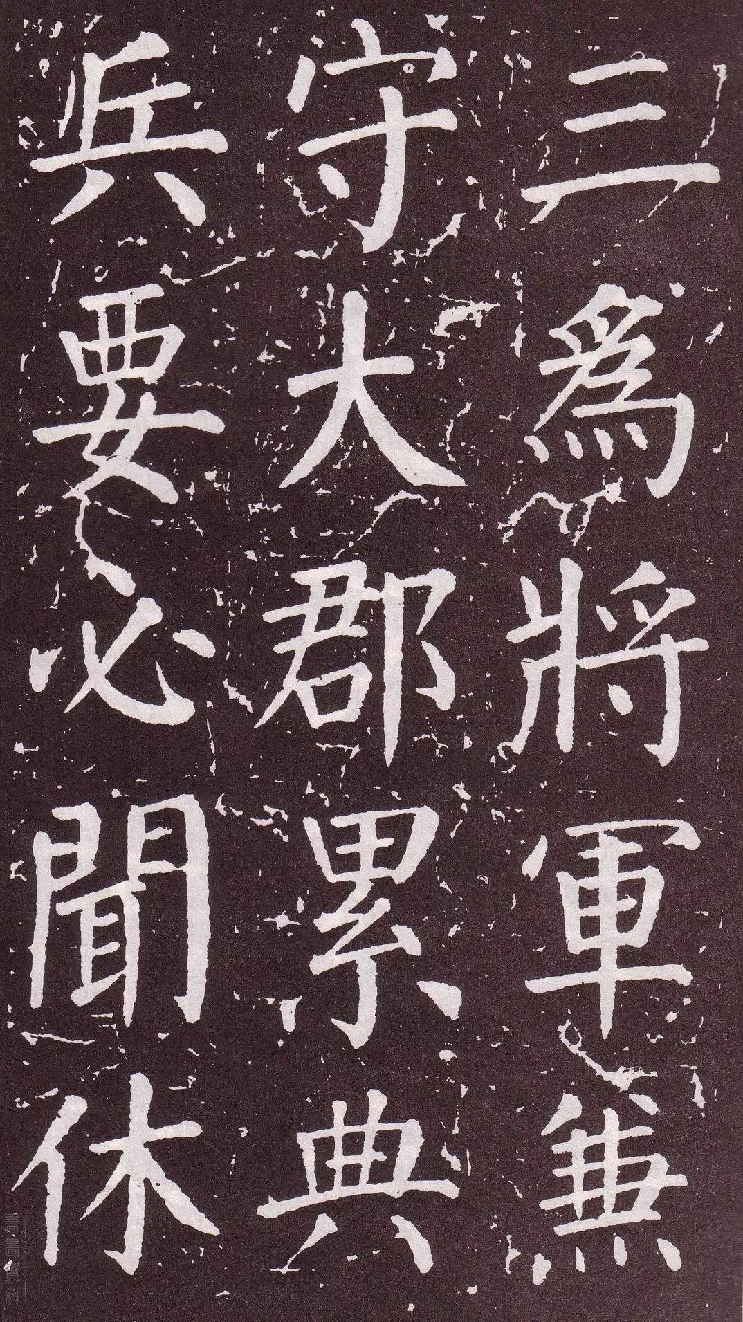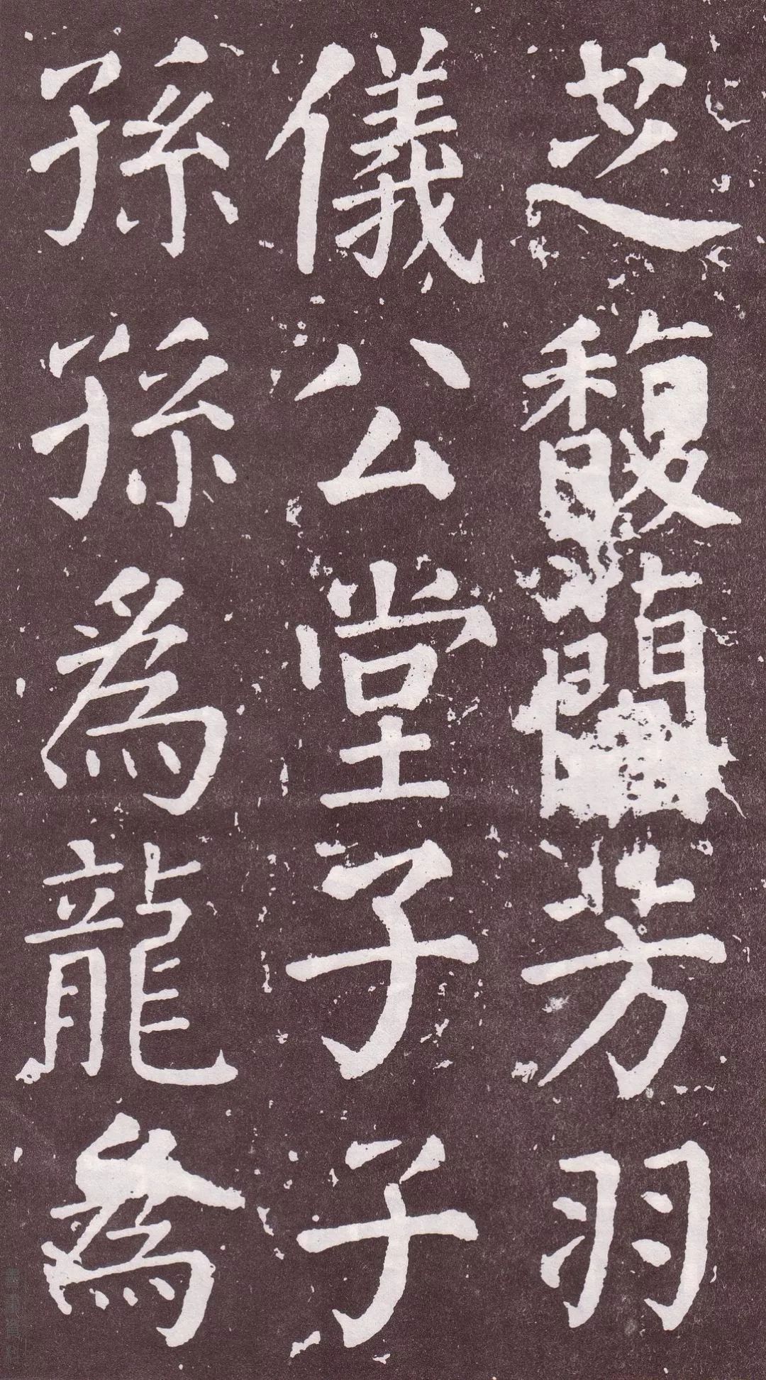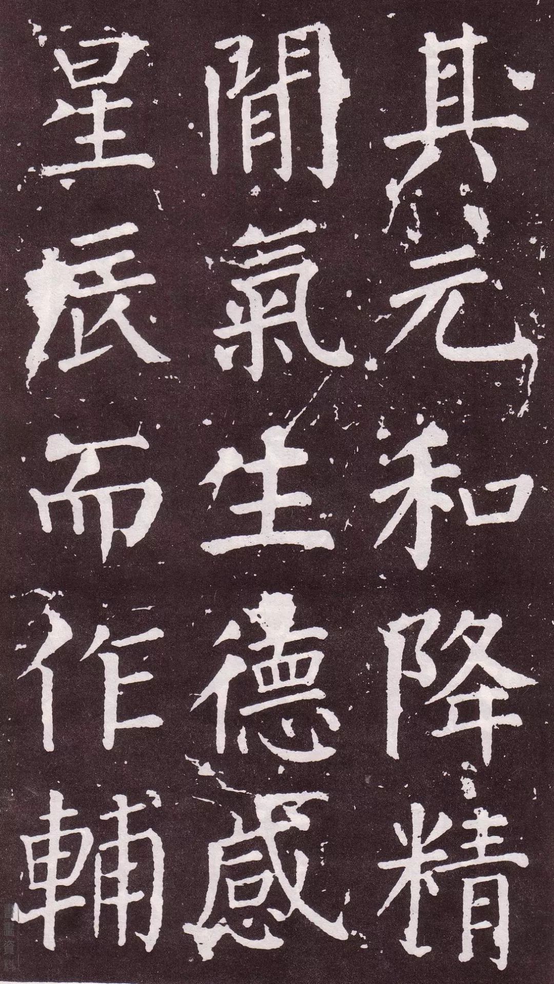 《郭家庙碑》是颜真卿五十六岁时所作,在诸多存世作品中不算很有名。初看它时,它只是典型的颜体,似乎并不特别。然而当我把这件作品与他在四十四岁时写的《多宝塔》帖以及七十一岁时写的《颜勤礼碑》比较起来看时却有了异样的感受。《郭家庙碑》似乎是从《多宝塔》走向《颜勤礼》这个转换过程中心路历程的一个中间体,它的一个突出的特点是:放松,相当的放松。《郭家庙碑》其整体的水准比起颜氏的代表作来显得不算精彩,从整体上精神的充盈程度在似乎既比不上《多宝塔》也比不上《颜勤礼》碑;在线条和结字上,显得有些松弛,有一些笔划比较随意,给人一种“只是随心去写,并不一定要求怎样”的心态感;字的大小、笔划的粗细差异也比较大,有的字如“于”“嘉”等字甚至取一些斜势,有的字如“寇”“围”等字甚至微微地有了行书的笔意;而更主要的是书写的整个心态给人一种突出的随意和放松的感觉。