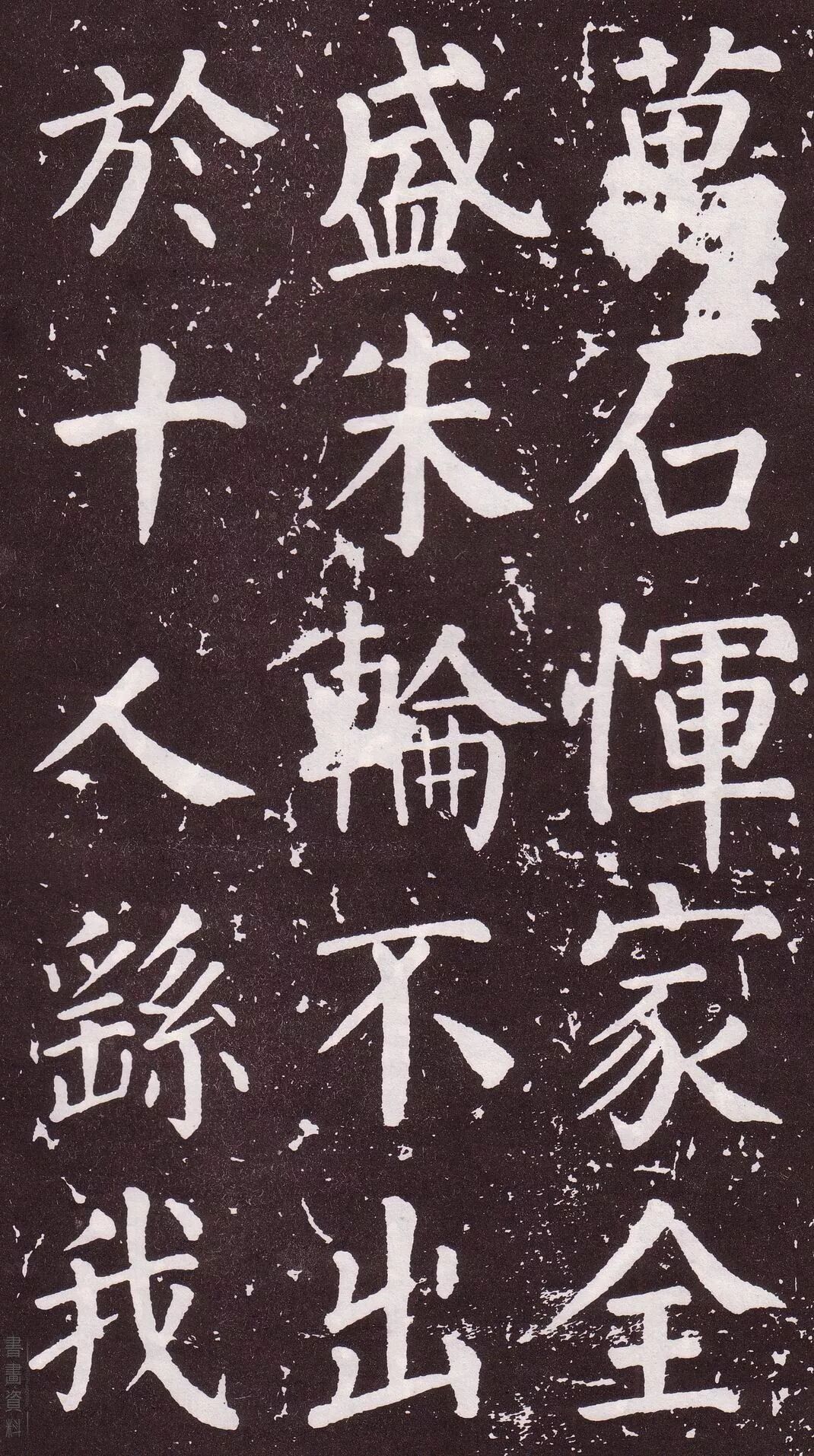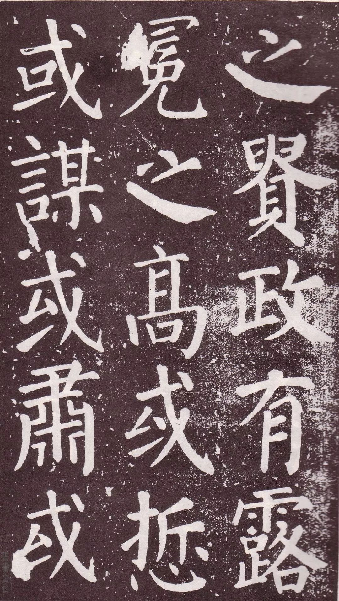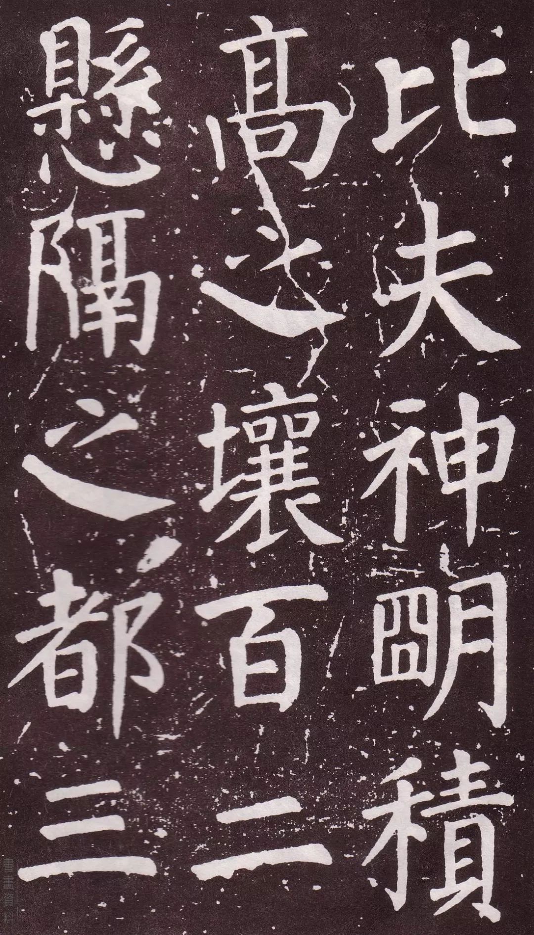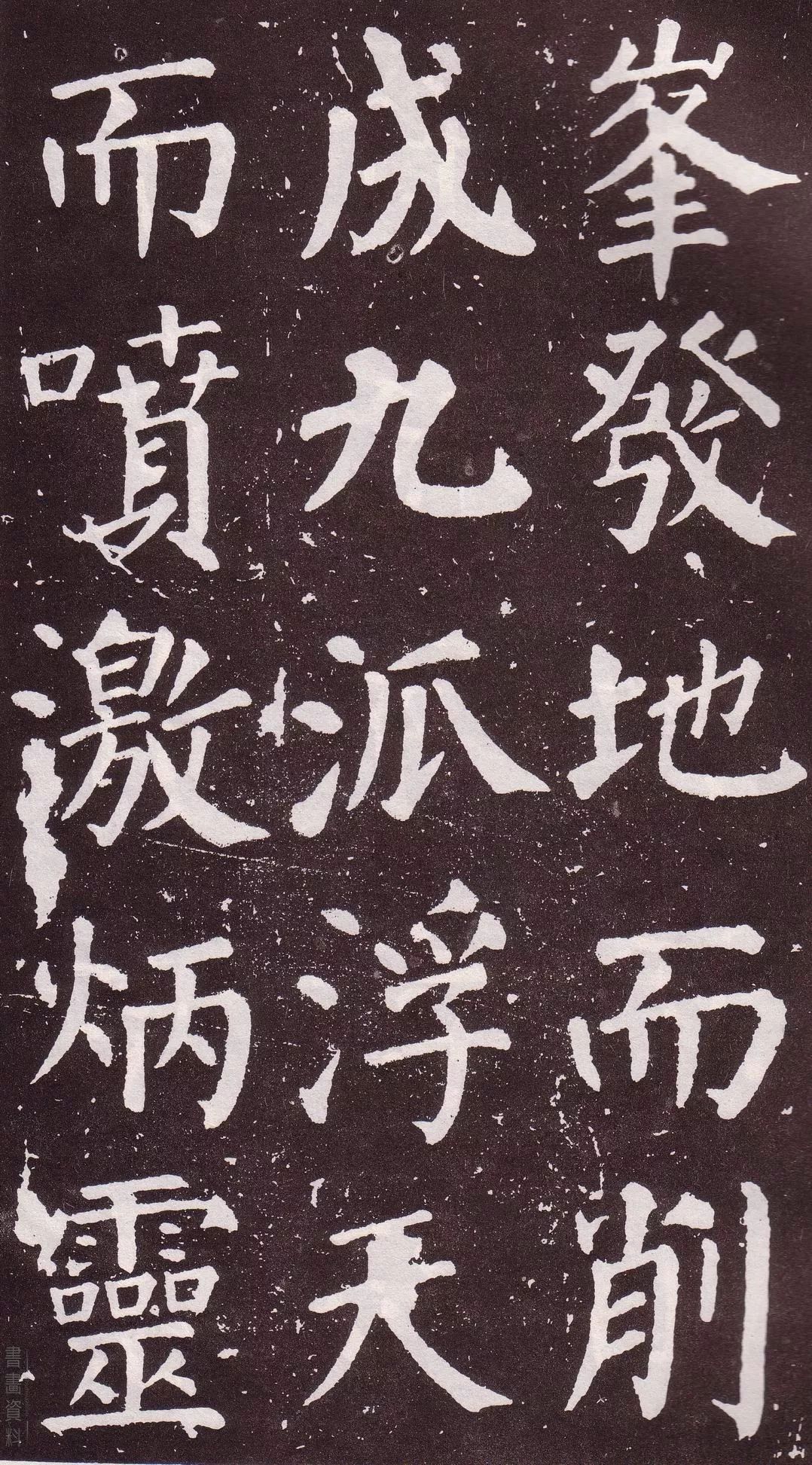 《郭家庙碑》是颜真卿五十六岁时所作,在诸多存世作品中不算很有名。初看它时,它只是典型的颜体,似乎并不特别。然而当我把这件作品与他在四十四岁时写的《多宝塔》帖以及七十一岁时写的《颜勤礼碑》比较起来看时却有了异样的感受。《郭家庙碑》似乎是从《多宝塔》走向《颜勤礼》这个转换过程中心路历程的一个中间体,它的一个突出的特点是:放松,相当的放松。《郭家庙碑》其整体的水准比起颜氏的代表作来显得不算精彩,从整体上精神的充盈程度在似乎既比不上《多宝塔》也比不上《颜勤礼》碑;在线条和结字上,显得有些松弛,有一些笔划比较随意,给人一种“只是随心去写,并不一定要求怎样”的心态感;字的大小、笔划的粗细差异也比较大,有的字如“于”“嘉”等字甚至取一些斜势,有的字如“寇”“围”等字甚至微微地有了行书的笔意;而更主要的是书写的整个心态给人一种突出的随意和放松的感觉。