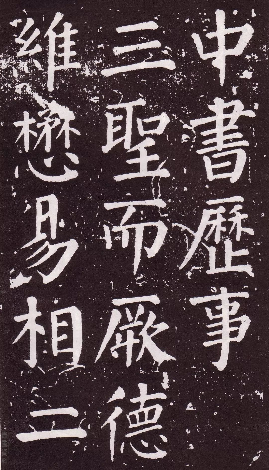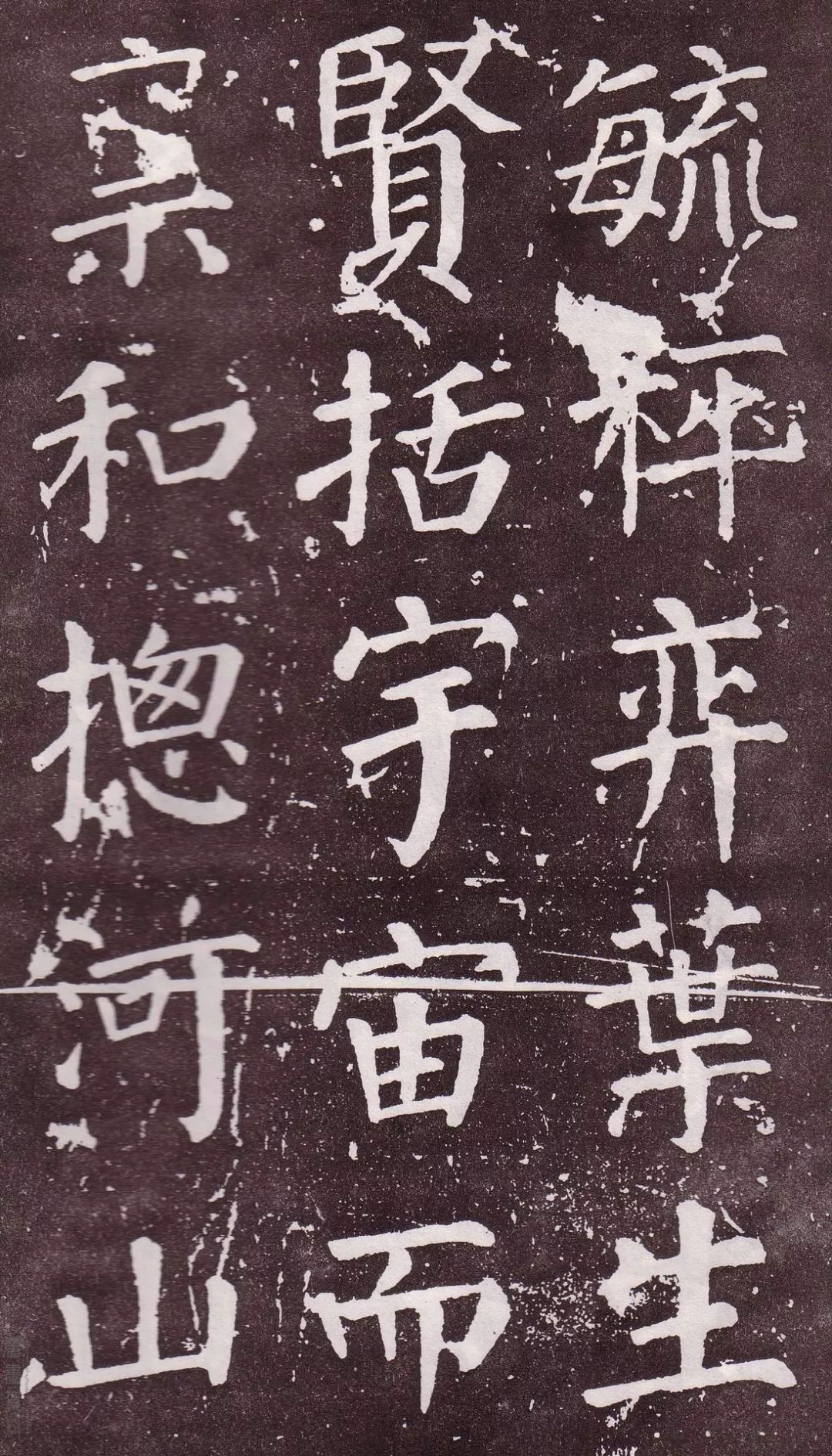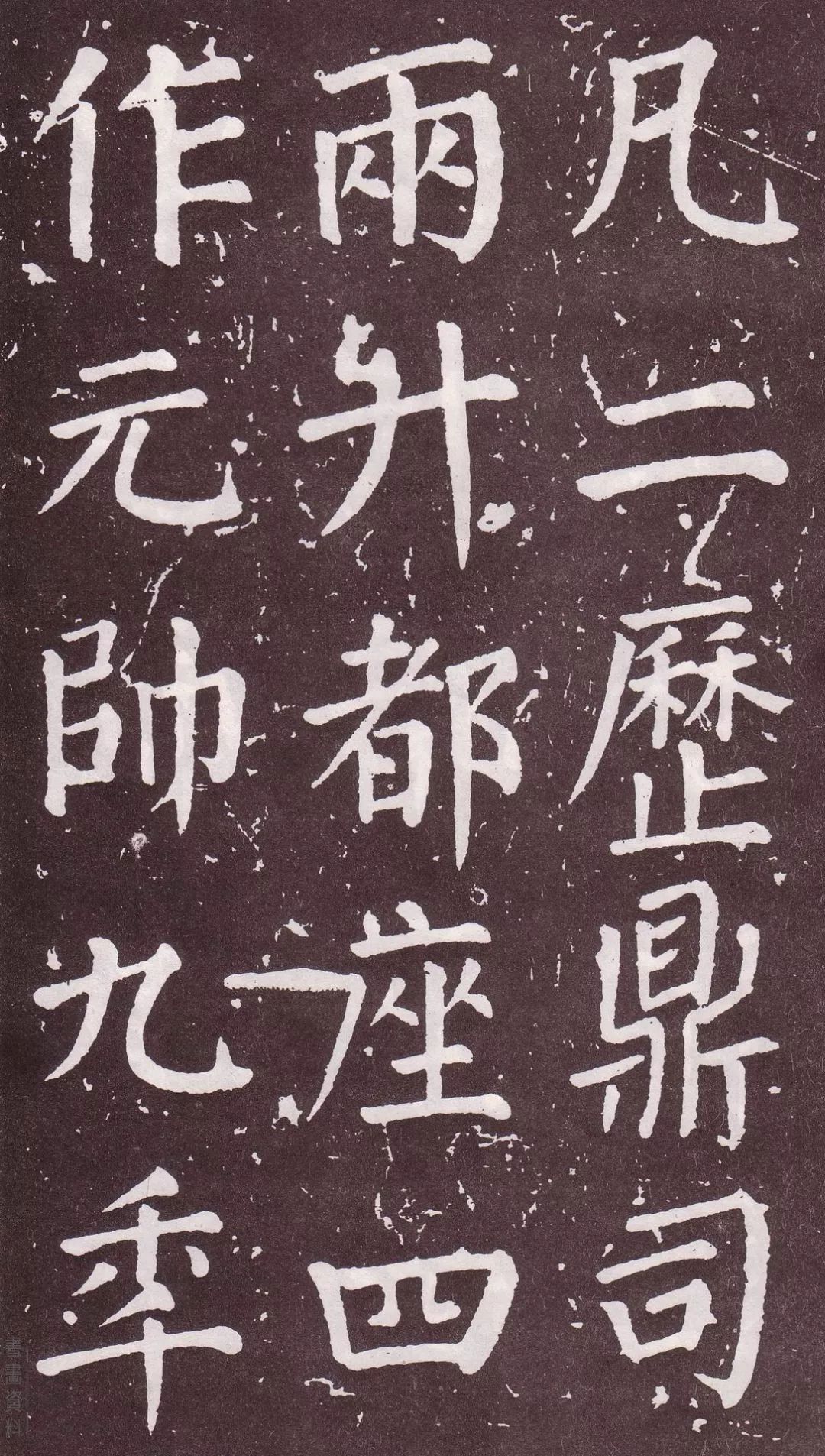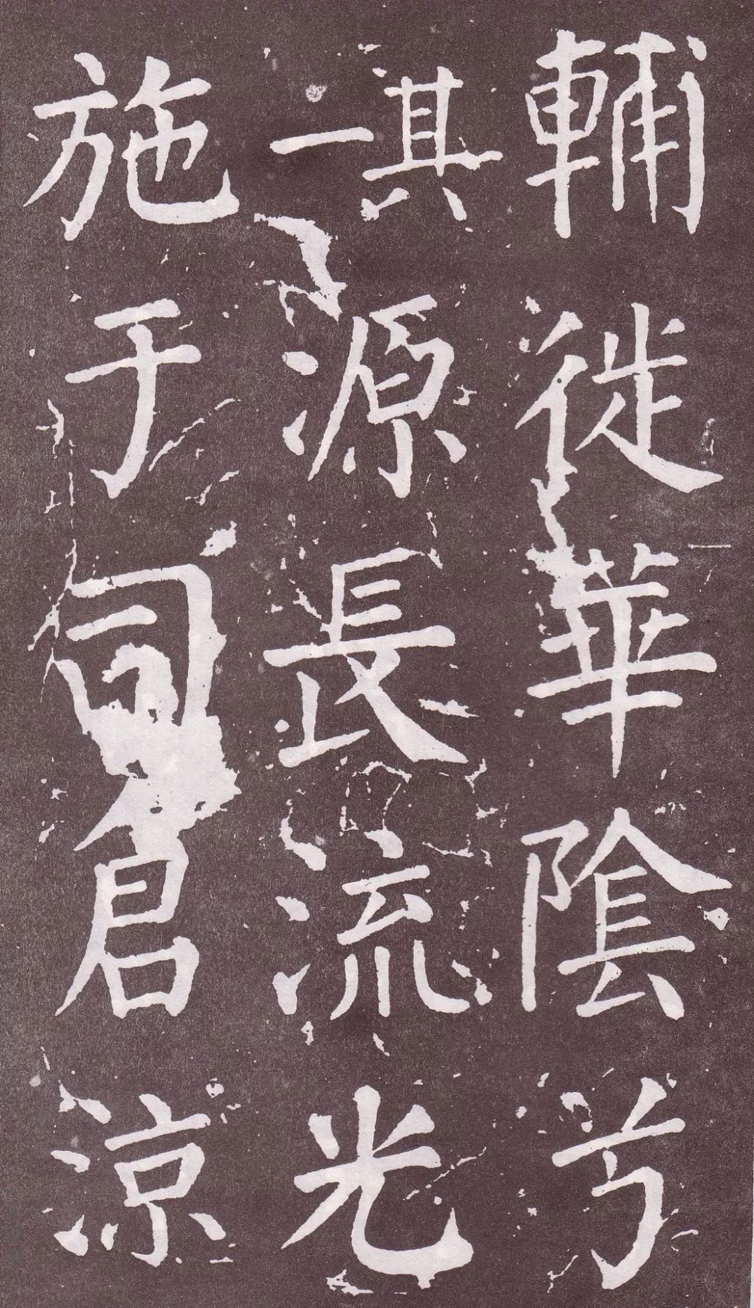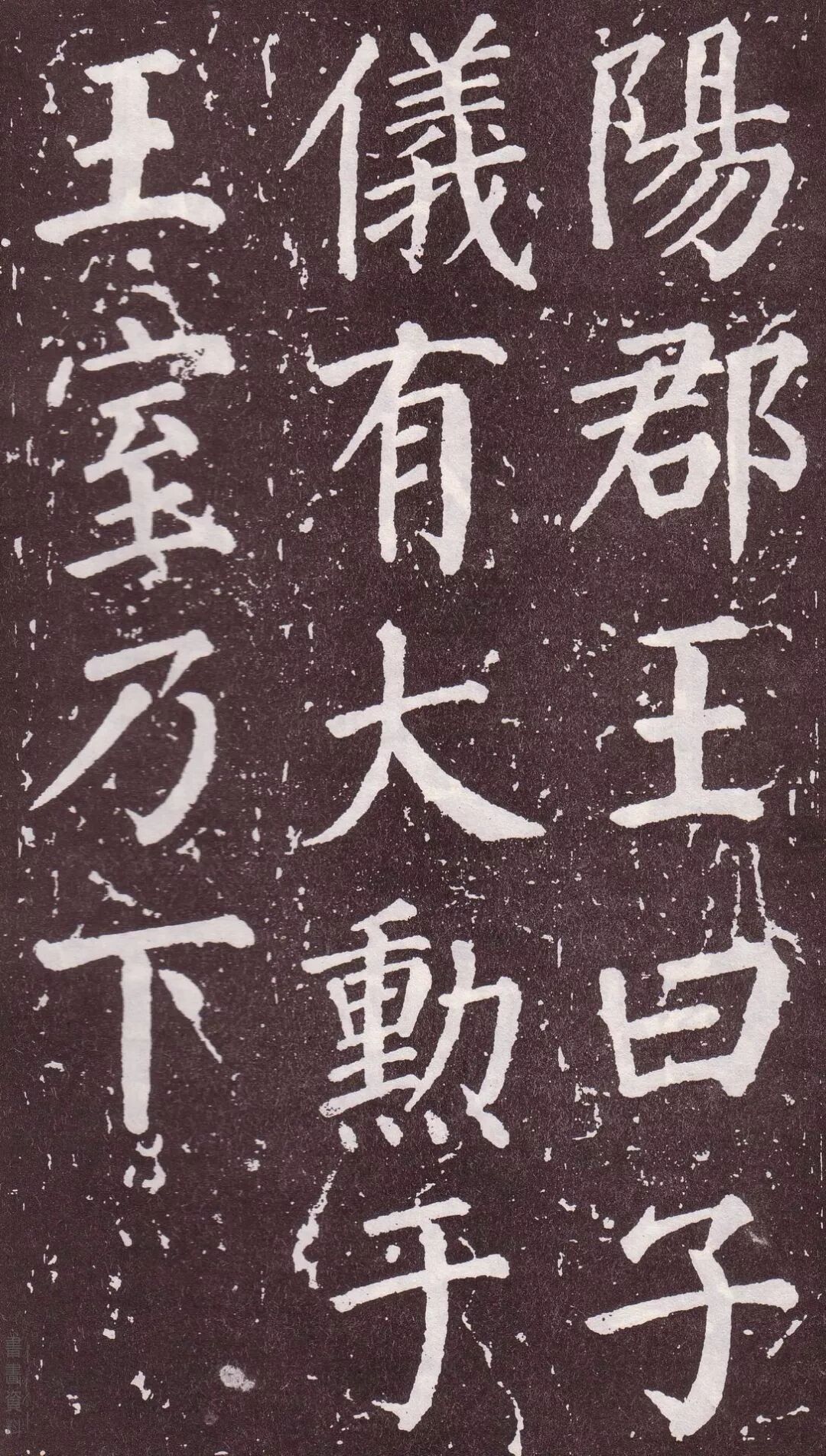 《郭家庙碑》是颜真卿五十六岁时所作,在诸多存世作品中不算很有名。初看它时,它只是典型的颜体,似乎并不特别。然而当我把这件作品与他在四十四岁时写的《多宝塔》帖以及七十一岁时写的《颜勤礼碑》比较起来看时却有了异样的感受。《郭家庙碑》似乎是从《多宝塔》走向《颜勤礼》这个转换过程中心路历程的一个中间体,它的一个突出的特点是:放松,相当的放松。《郭家庙碑》其整体的水准比起颜氏的代表作来显得不算精彩,从整体上精神的充盈程度在似乎既比不上《多宝塔》也比不上《颜勤礼》碑;在线条和结字上,显得有些松弛,有一些笔划比较随意,给人一种“只是随心去写,并不一定要求怎样”的心态感;字的大小、笔划的粗细差异也比较大,有的字如“于”“嘉”等字甚至取一些斜势,有的字如“寇”“围”等字甚至微微地有了行书的笔意;而更主要的是书写的整个心态给人一种突出的随意和放松的感觉。