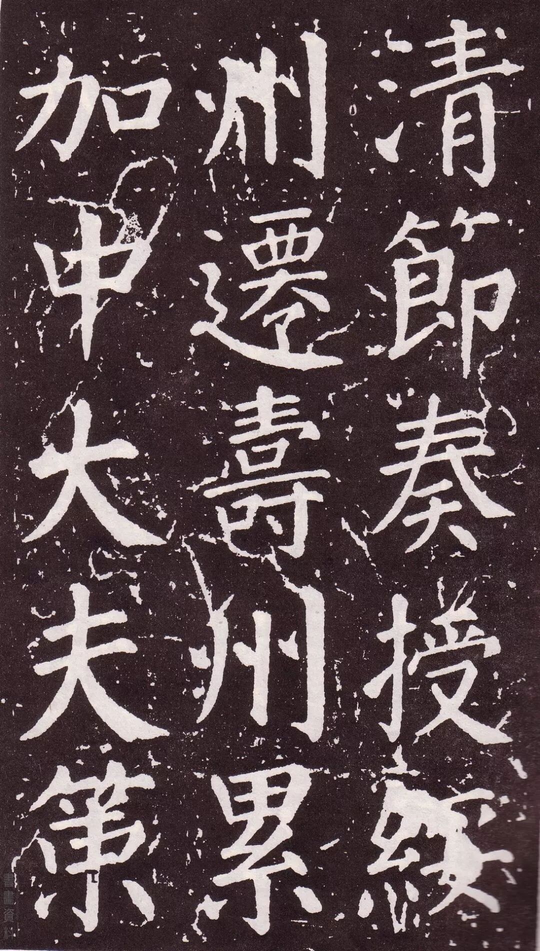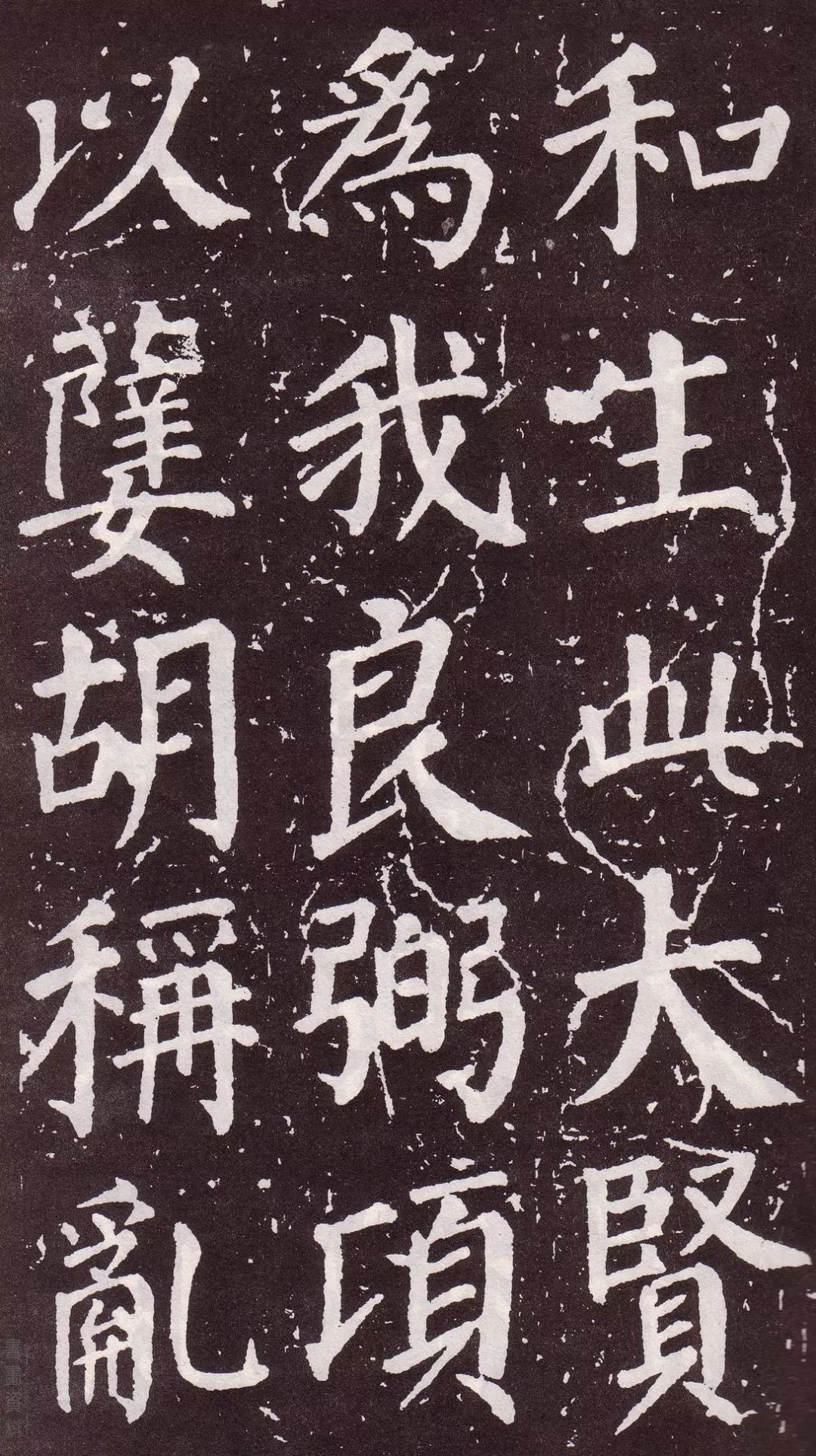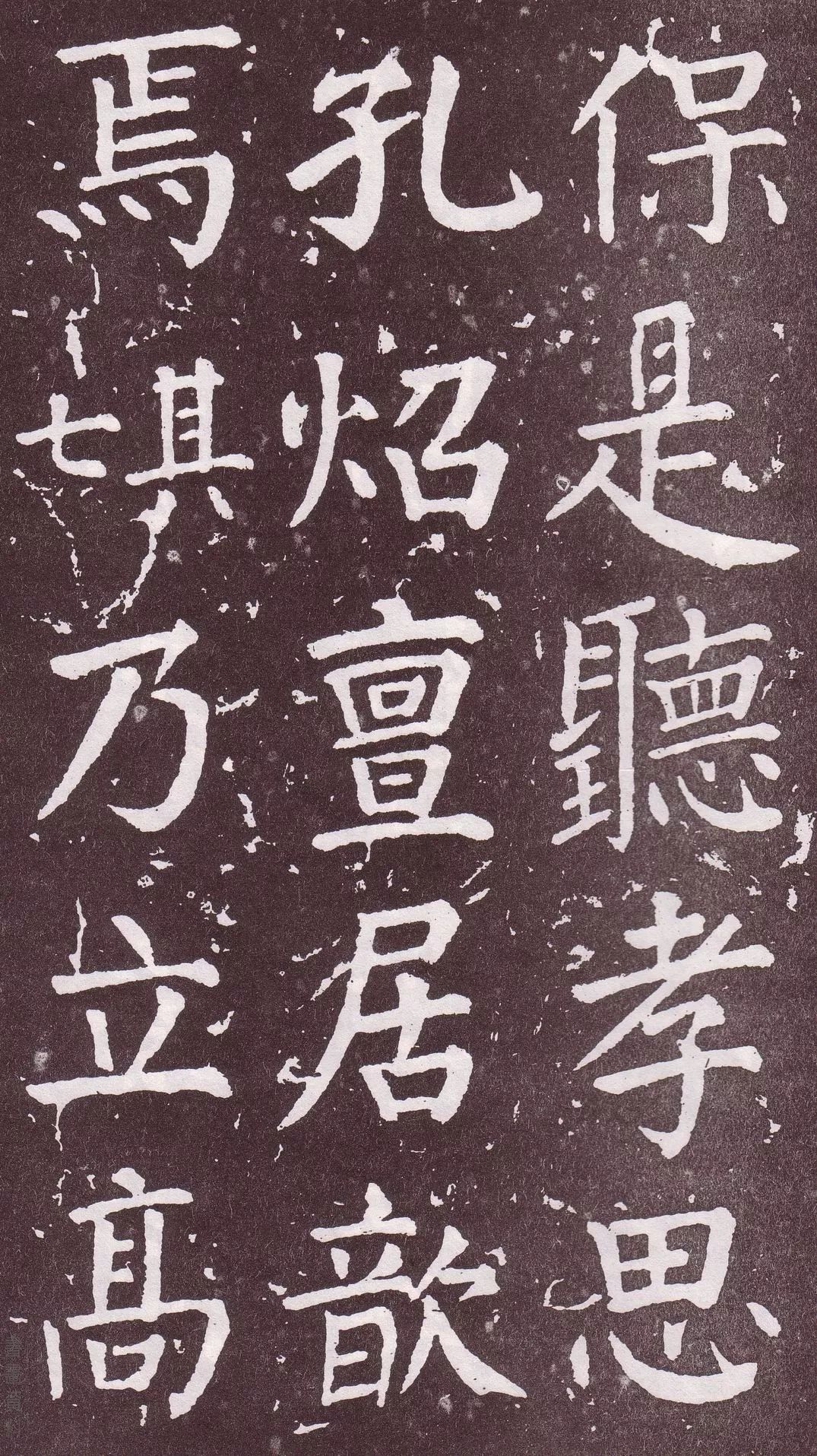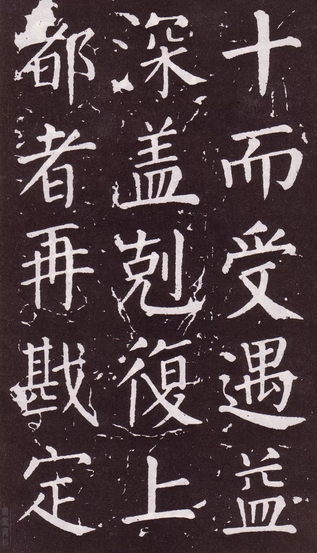 《郭家庙碑》是颜真卿五十六岁时所作,在诸多存世作品中不算很有名。初看它时,它只是典型的颜体,似乎并不特别。然而当我把这件作品与他在四十四岁时写的《多宝塔》帖以及七十一岁时写的《颜勤礼碑》比较起来看时却有了异样的感受。《郭家庙碑》似乎是从《多宝塔》走向《颜勤礼》这个转换过程中心路历程的一个中间体,它的一个突出的特点是:放松,相当的放松。《郭家庙碑》其整体的水准比起颜氏的代表作来显得不算精彩,从整体上精神的充盈程度在似乎既比不上《多宝塔》也比不上《颜勤礼》碑;在线条和结字上,显得有些松弛,有一些笔划比较随意,给人一种“只是随心去写,并不一定要求怎样”的心态感;字的大小、笔划的粗细差异也比较大,有的字如“于”“嘉”等字甚至取一些斜势,有的字如“寇”“围”等字甚至微微地有了行书的笔意;而更主要的是书写的整个心态给人一种突出的随意和放松的感觉。