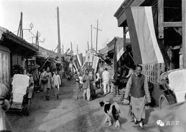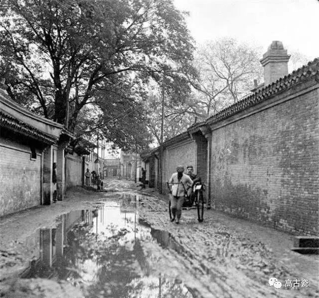 这是一组清末民初的老北京照片,难得一见。图为雨后的北京,看这条胡同的宽度和旁边的深宅大院,可知道这是王府区,即便富贵之地,雨后的街道也是万般泥泞,拉车人挑没有积水的一边走。