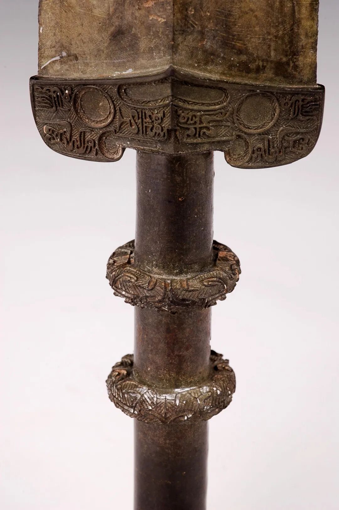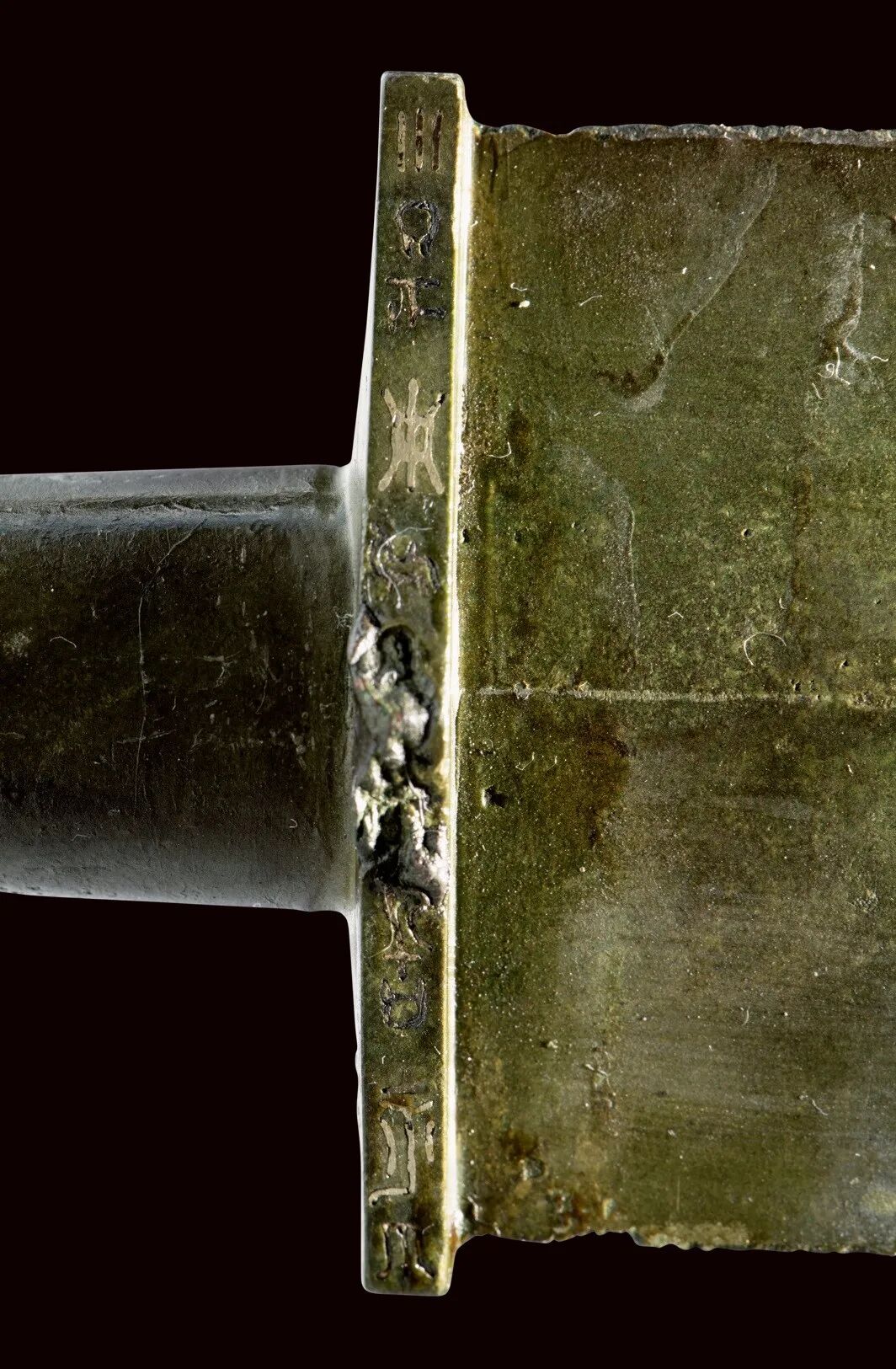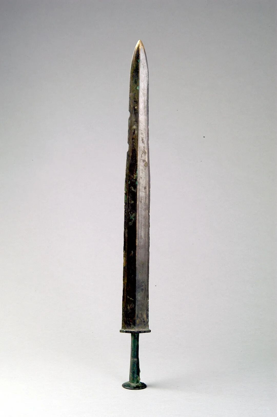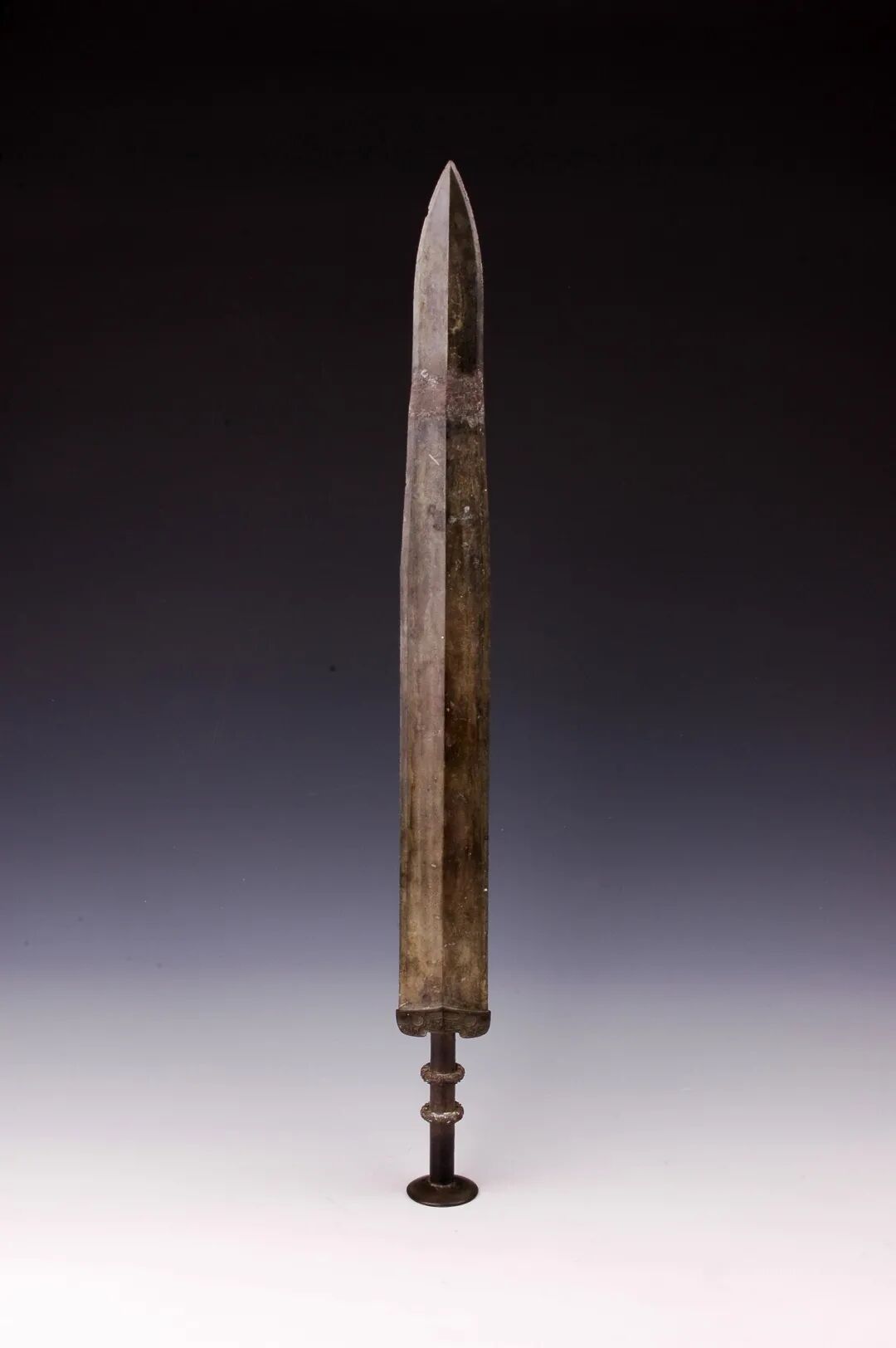 荆州博物馆的越王不光剑,荆州市张家山楚墓出土,通长65.3厘米,圆形剑首环列错金银铭文十二字,中空圆管型剑茎,无箍,菱形薄剑格两面各有错金铭文四字。