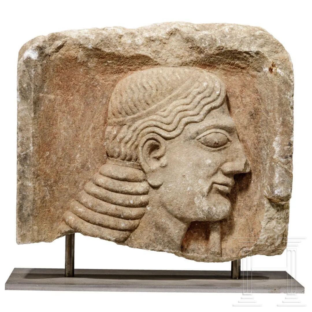 Lot 771 公元前一世纪上半叶-公元前六世纪中叶 希腊古代战士墓碑来源:来自德国南部古典语言学家的收藏,据其后人描述,此为藏家在1950年至1960年间获得。后为家族藏品。