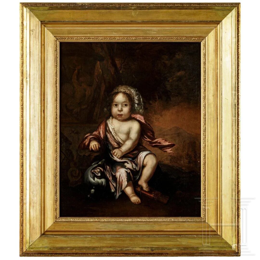 Lot 7 约1655年 尼古拉斯·梅斯 Nicolas Maes(1634-1693)扮丘比特的奥兰治王子尺寸:58 x 46 cm;含框 82 x 71 cm说明:尼古拉斯·梅斯(Nicolas Maes)绘制并签名,他是荷兰黄金时代重要艺术家和伦勃朗最有才华的学生之一。