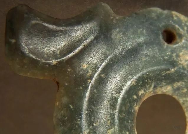 距今八千年的红山文化,玉器的制作已经有了长足的进步,这时候的玉器还看不到细阴线,应该还没有出现旋转陀机。虽然有了桯钻和管钻,但是从红山文化玉器上看,应该不是轴心旋转陀机制作的。