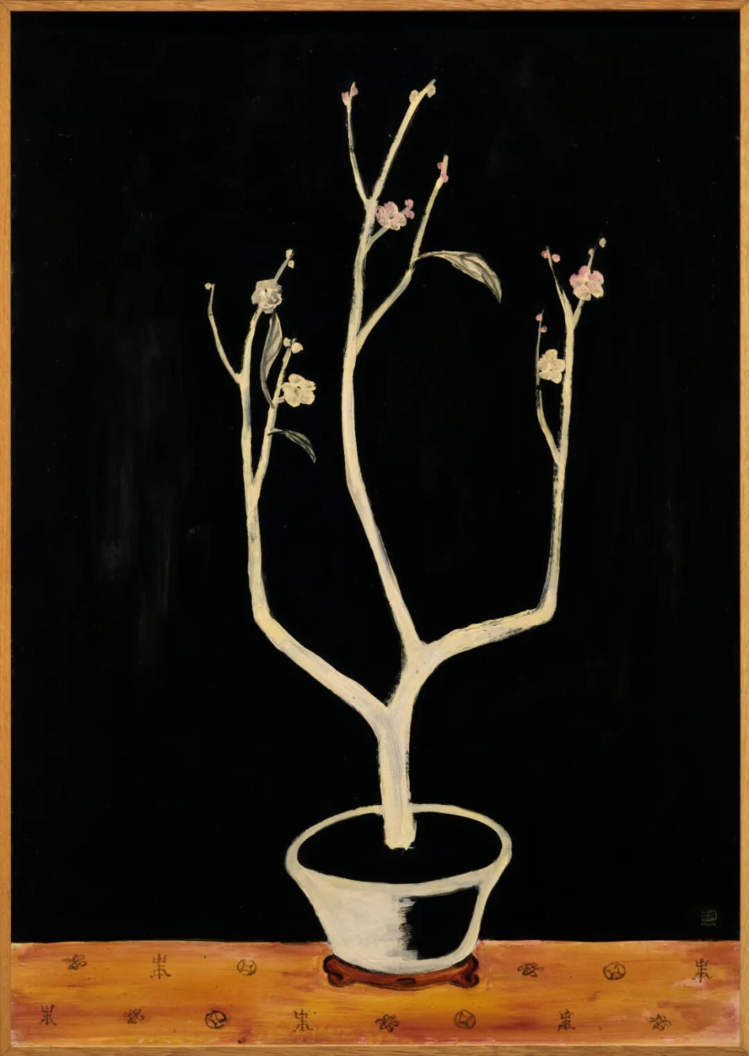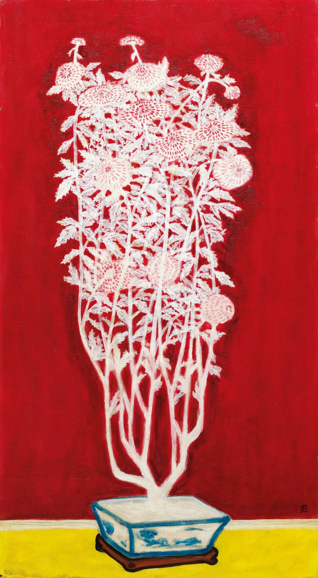 常玉于1920年代移居巴黎,当时那里是艺术新思和创意灵感的中心所在。他采用当时最前卫的线条与色彩平面表现方式,融入独特东方美学韵味,因而在战前巴黎画派中脱颖而出。《梅花盆景》便是彰显常玉独特美学风格的代表之作。