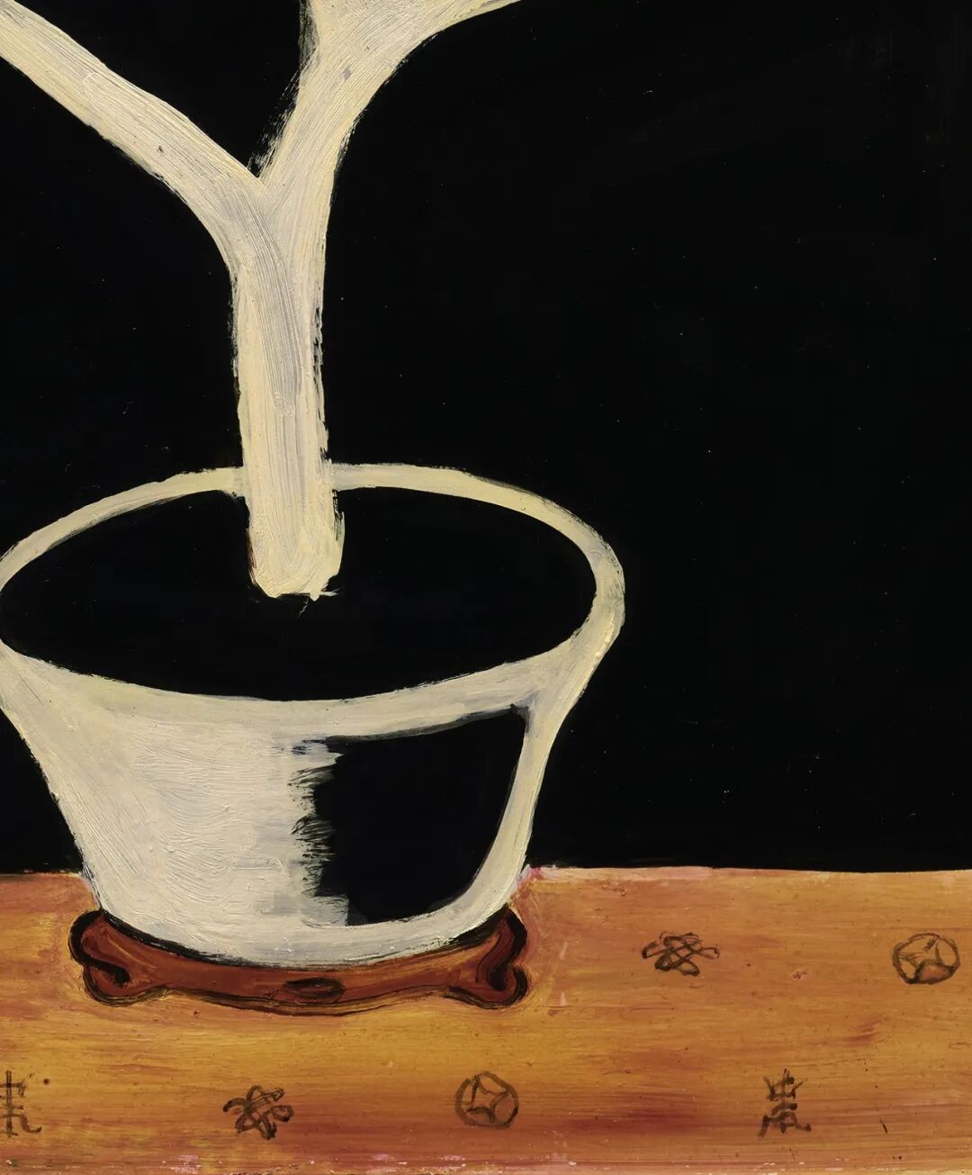 《梅花盆景》不仅是唯一一幅常玉绘于1940年代的梅花作品,更是唯一一幅绘有黄金长寿木桌的梅花盆景杰作。