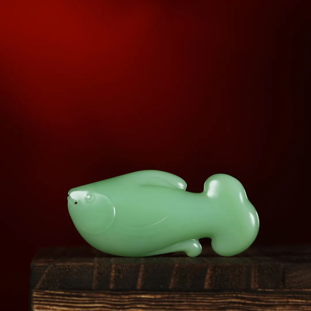 作品借鉴宋代瓷器的美学特征,形制方正,刚建之中隐透婉约之韵,四角葵口内收,锋芒柔敛,落落大方。器壁薄厚适宜,轻盈而不脆弱,承器在手,目之所及,一切都觉得恰到好处。佛教、祥瑞题材的玉雕小品一直广受市场欢迎,可以预见的是,无论是当下还是未来,这类玉雕题材的市场需求大概率依然非常稳定,这跟中国人独特的文化心理、集体意识密切相关。并且,这类题材玉雕的审美范式经过几千年的沉淀,已然变得经典且隽永。中国工艺美术大师苏然作品