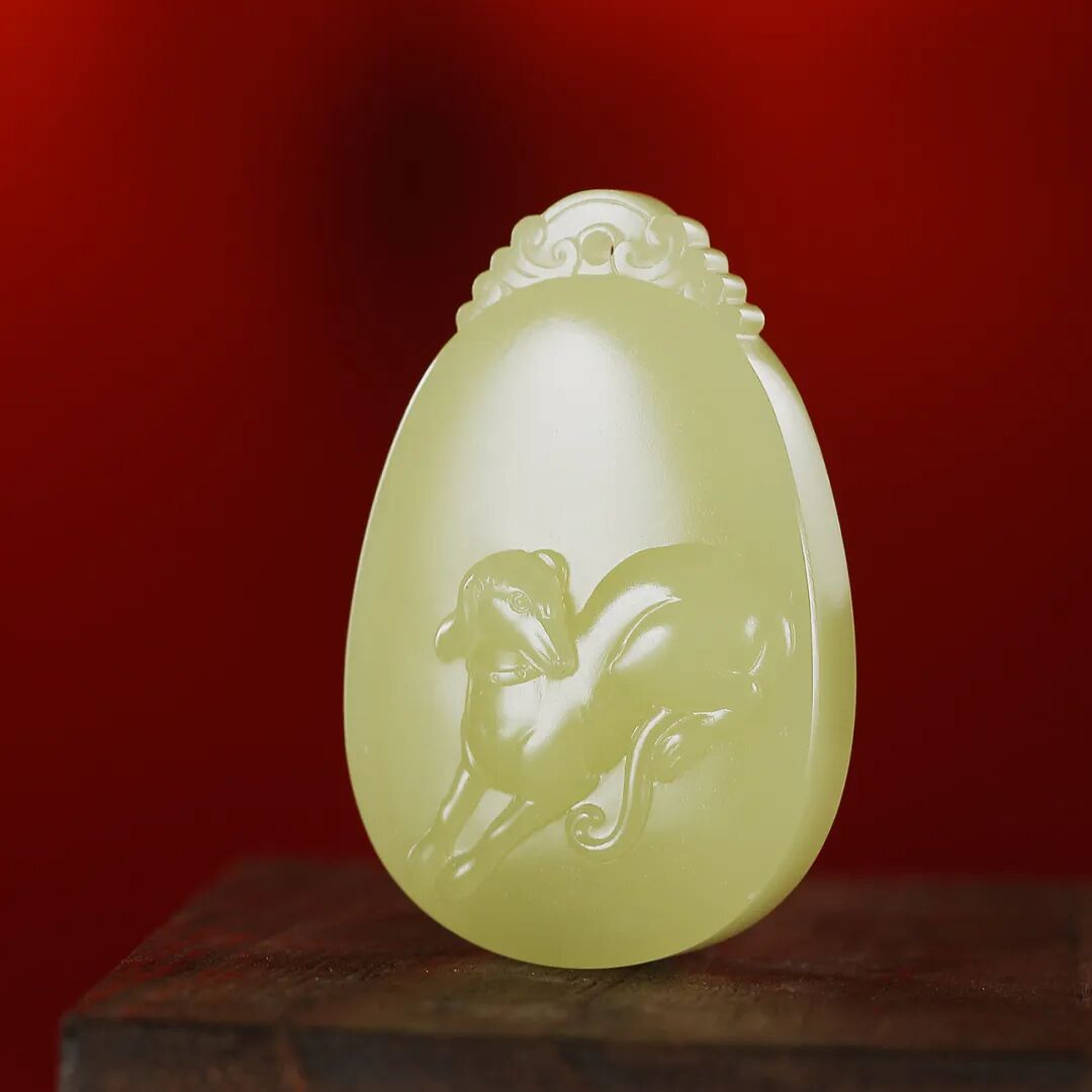 和田玉中,黄玉比白玉更加稀有,明丽的“鸡油黄”更是黄玉中难得的珍品。更加罕见的是,此作玉料色泽匀实,质地细腻,无绺无裂,油润非常!近年来,黄玉的价格尚处洼地,但“黄玉为上,羊脂次之”这句古话,却充分映证了其历史价值,也揭示了黄玉未来的升值潜力。玉牌画面明晰简素,一只卧犬机敏、忠诚,意在守护主人的平安与吉祥。