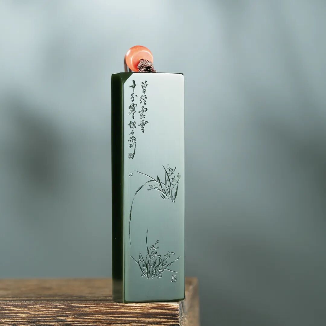 此牌以郑板桥《兰花图》为蓝本,大师通过阴刻深浅的变化来比拟墨色的淡浓和笔法的轻重,传神的还原了郑板桥的洒逸画韵,“曾经霜雪十分寒”的诗句将幽兰凌寒独立、暗香悠远的意境渲染的唯美高妙,沁人心脾。