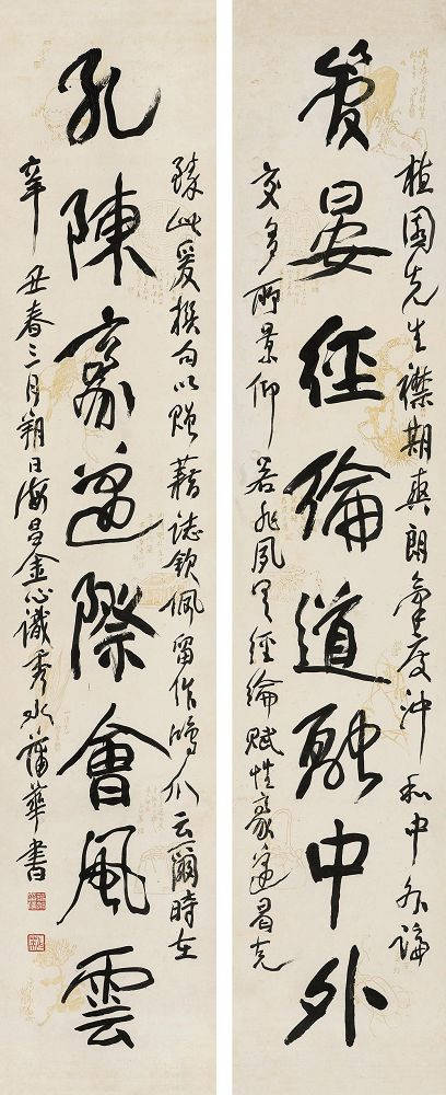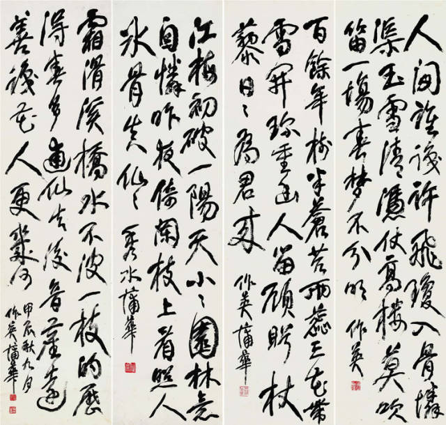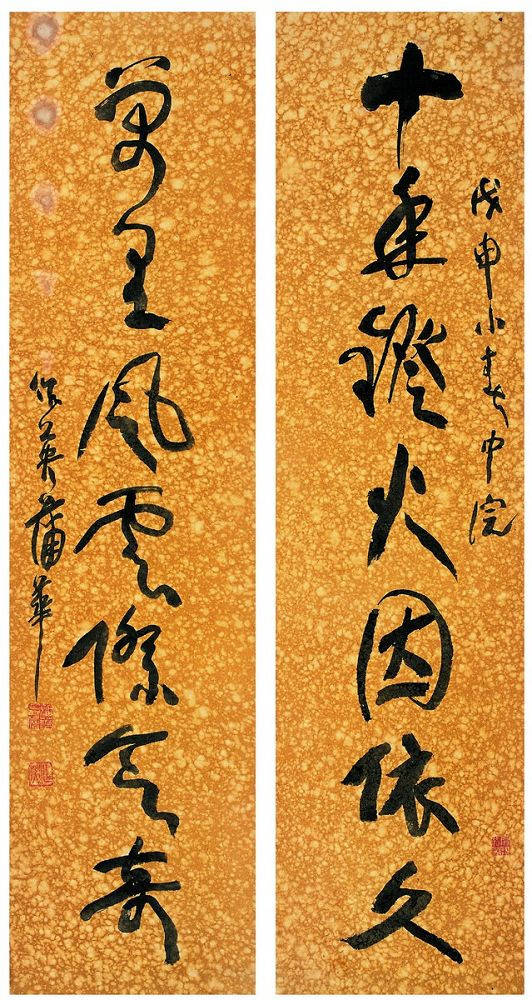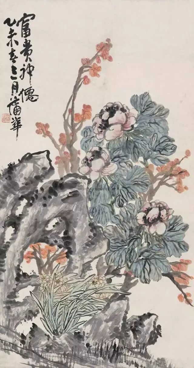 又有些前来求画者趁其畅饮,备笔墨纸砚,酒酣落笔,顷刻成幅,山水花卉,有求必应,因而有许多作品流传下来。