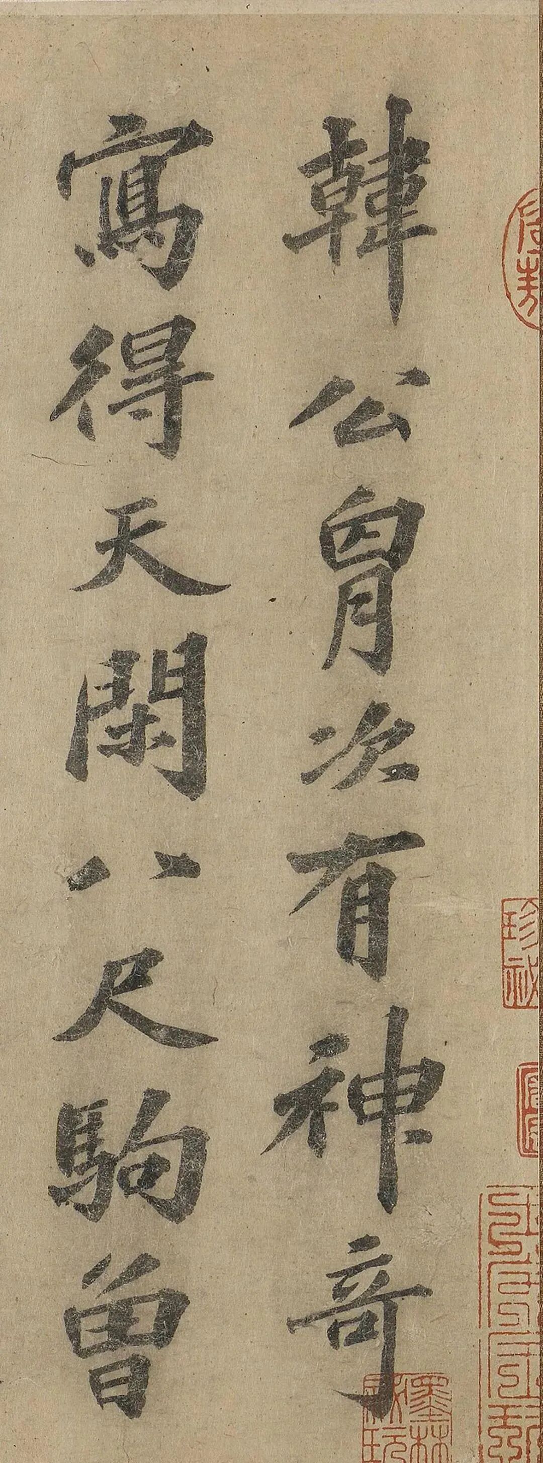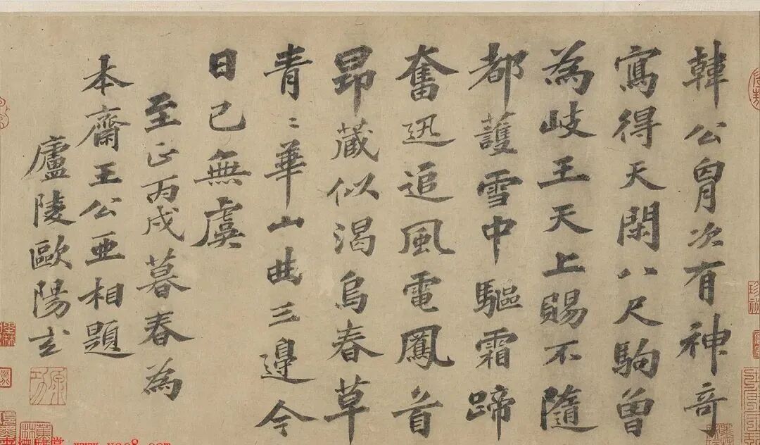 后世将其与吴澄、虞集、揭傒斯并称为“元四学士” 。今日,我们欣赏他的楷书题《清佚名摹韩干胡人呈马图》。