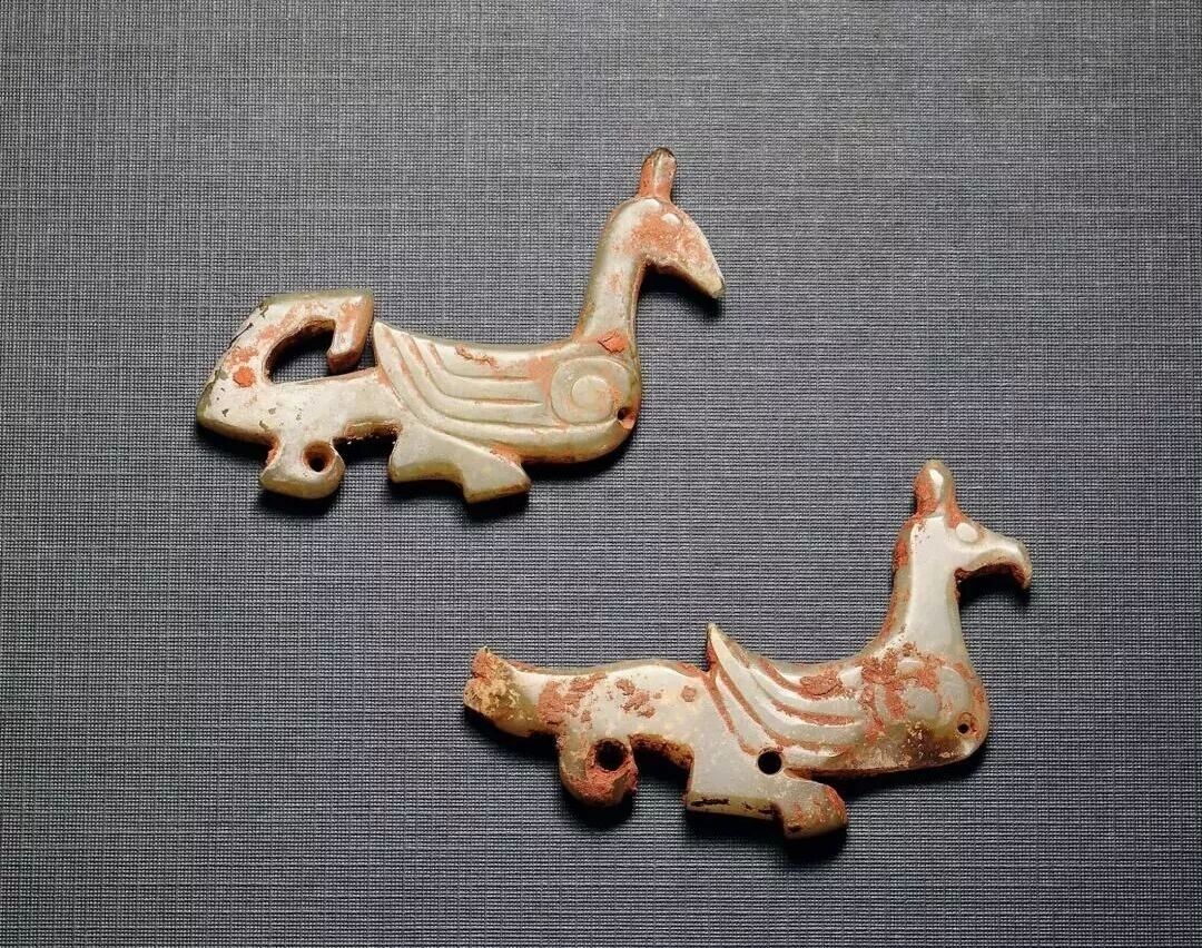 战国 青玉龙形佩及青玉凤形佩各一件(20-30万)