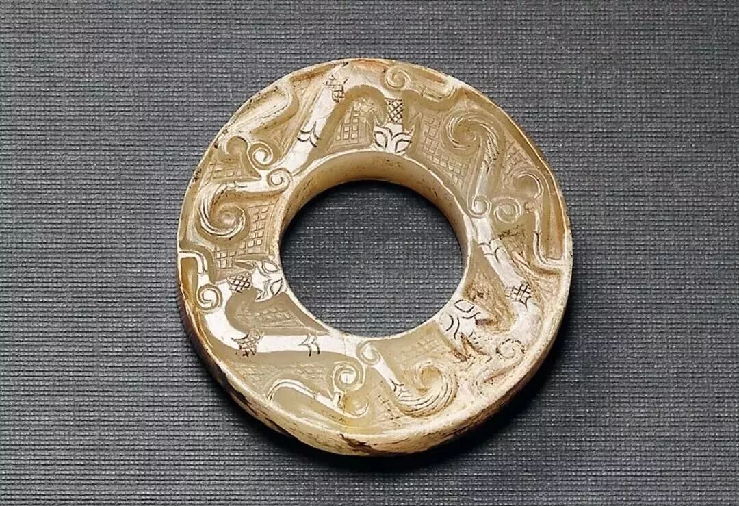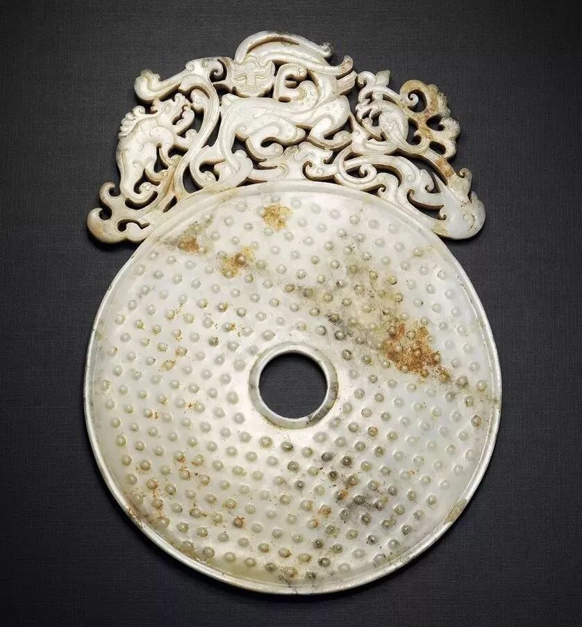 东汉 白玉乳丁螭虎瑞兽纹出廓璧(150-250万)