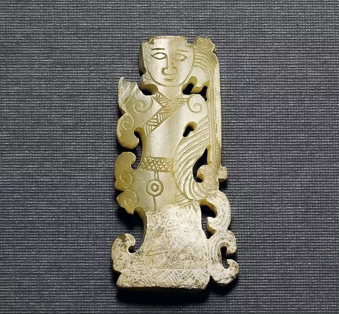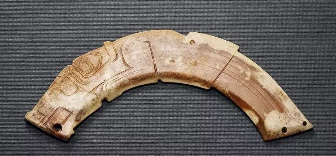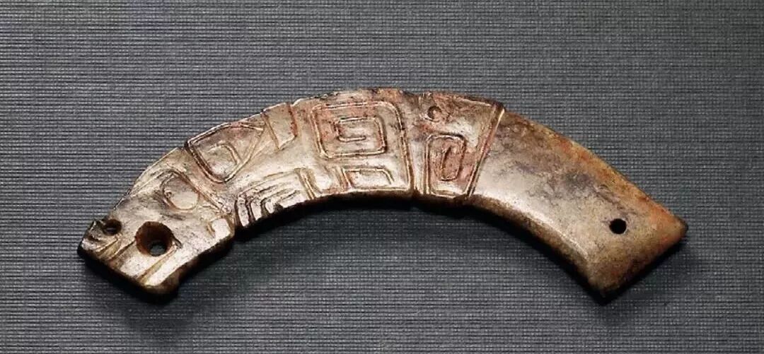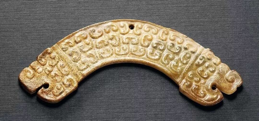 西周晚期 玉人龙纹璜形佩(6-10万)