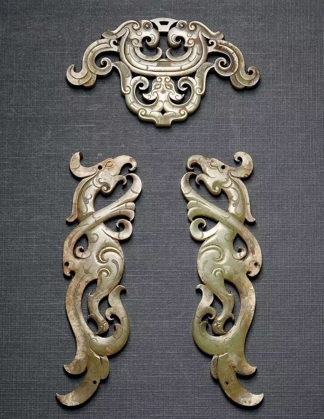 战国至西汉 青玉龙凤纹组佩一套三件(300-450万)
