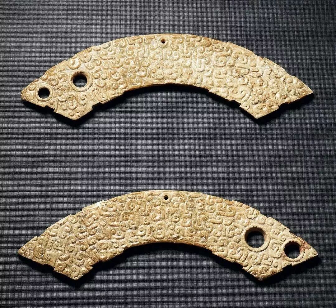 春秋 青玉龙纹璜形佩一对(26-40万)