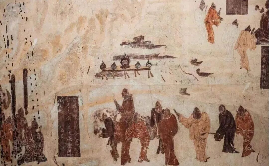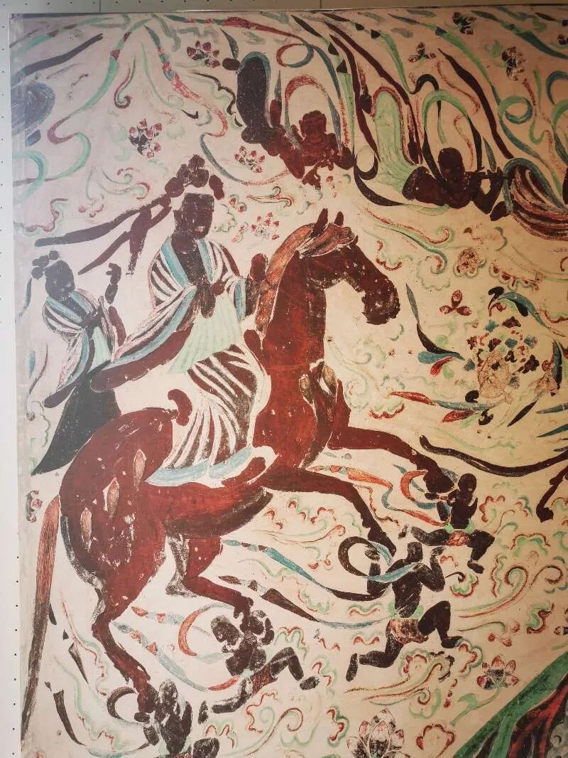 《兔本生谭》唐卡,十八世纪,西藏绘画 鲁宾喜马拉雅艺术博物馆收藏3、有极为罕见的一部分,如独角仙人本生,佛陀以不那么正面的形象出现,以宣扬佛教的戒欲思想总而言之,佛教为传播佛法,宣扬释迦牟尼的前生曾经是于大众善行献身的国王、王子、贤者、良士或是动物中的鹿王、猴王、象王、狮王等。因缘故事是与本生故事非常类似的一种故事类型,这是佛门弟子、善男信女前世或今世因缘和释迦牟尼教化众生的故事。因缘故事和本生故事的区别是:本生故事只讲释迦尼本人前生的故事,而因缘故事则主要讲佛门弟子、善男信女前世或今世的故事。克孜尔石窟第8窟的菱格因缘图,上画的是猴子奉蜜于佛,佛云有虫,猴去虫又奉之,又曰太浓,猴就加泉水以稀之,再奉,佛和众弟子饮了,猴很开心,一高兴跌入水坑淹死了,因前身奉过佛,来生生于富贵人家做了富人......此类因缘故事在克孜尔石窟中有100多幅。佛教常以事物相关之间的关系,来说明它们产生和变化的现象。其中事物产生或毁灭的主要条件叫作因,而外部的辅助条件叫作缘。合称为因缘。佛教认为每人都受自己善恶行为招致的二重因果,即过去、现在、未来的三世中,现在之果必有过去之因,现在之因必有来生之果。须摩提女因缘故事,大意为:须摩提女笃信佛教,而她父亲却把她嫁给了外道家。过门以后,她很不礼貌,甚至于关上门睡大觉,谁都不见,得罪前来贺喜的客人和家人。公公满财长者把一腔忧愁告诉给自己的知心朋友。当这位朋友知道新媳妇就是须摩提女时,着实大吃一惊——因为她是佛弟子,于是就把有关佛的神威告诉给满财长者。满财长者让须摩提女把她的师父——佛请来相见,须摩提女欣然应诺,立即上高楼焚香请佛,佛即刻“遥知其意”,并吩咐弟子们准备第二天赴宴。当他们一个个从天而降的时候,满财长者都要问须摩提女:“这是你的师父吗?”回答都不是。最后,释迦在众弟子的前呼后拥下出场。外道被佛的威力所降服,统统皈依佛教。因缘故事,也是佛教徒依据古印度和东南亚神话、童话、民间故事加工、改编的。经过长期的加工改编,后来又集结成《贤愚因缘经》《佛弟子因缘经》《撰集百缘经》等。壁画中的因缘故事就是根据这些佛教经典绘制的。因缘故事主讲善男信女们遭遇种种厄难之后悟道皈依的故事。因此,故事呈现上,往往有佛陀说法或者佛门弟子帮助皈依的场景。佛教史迹故事画是描绘佛教历史、佛教圣迹、佛教人物、佛教瑞像、佛教灵异、感应故事等方面的壁画。这类壁画中,既有真人真事,也有想象虚构的故事传说。这些故事和传说,虽则已被历代佛门弟子神化变异,宗教色彩十分浓厚,但其中也有不少史实,是现今研究佛教史和中印文化交流史极为珍贵的形象资料。其中很有代表性的一幅图,就是莫高窟第323窟北壁西端中的《张骞出使西域图》。有人曾依据此图论证了汉武帝派张骞赴大夏国问金人(佛陀)名号,是佛教传入中国之始,但也有人持反对观点,认为这是附会之说。但不管怎么说,张骞出使西域,开拓丝绸之路的历史功绩是真实可信的。此图是现存最早的“张骞出使西域图”。史迹故事是指佛教故事画中流传的历史故事,包含佛法东传、藏传过程中发生的传奇故事,我们可以视之为最初的“佛教史”。另外史迹故事还演化出来的一种类型叫做瑞像,可以说是一些高僧大德在传法过程中通过梦境或幻视,看到了他认为的佛的形象,然后他把这些形象画下来,就构成了瑞像画。佛教故事发端于印度,传至西域经过人文情怀的渲染,再转为汉地佛教视觉艺术中津津乐道的思想……它所彰显的主题,早已根植于我们的文化当中。无论壁画还是雕刻,这些形式多样,异彩纷呈的图像,为我们展示出一个个回味深长的动人故事。这是美妙精彩的佛国世界的一隅,是汗牛充栋的佛经文献的某处篇章,也是浩瀚深邃的佛教哲学思想中,不可或缺的组成部分。大同云冈石窟第6窟明窗西壁白马吻足像 图源:《云冈石窟》在历史的长河中,它作为一种独具魅力的佛教艺术形式,闪耀着智慧与信仰的光芒,照进每一个信徒的心中。