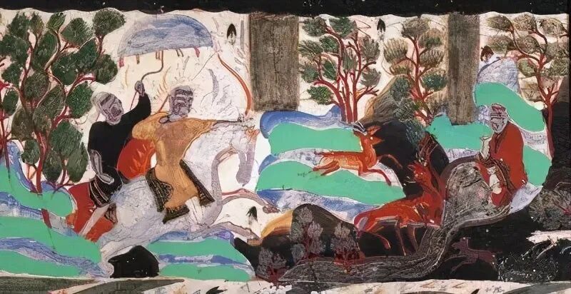 不过,这个词并不是佛教首创。“本生”一说形成于佛教创立之前。古印度人相信轮回转世,有因即有果,讲述某人前生往世经历的故事结合民间传说,便形成了“本生”这一文体。婆罗门教等宗教派系为宣传本教教义也常会引用这些“本生故事”。简单来说,依据佛教灵魂不灭、因果报应、轮回转世的思想,得成正果需要旷世修行,佛祖释尊也不例外。即使是释迦牟尼,也要在前生要经过无数次的善行转世,最后才能成佛。正如《梵网经》中提到的,佛陀“吾今来此世界八千返”。释迦牟尼在娑婆世界已经历过无数轮回,以种种不同的身份行菩萨道,最终成佛。尸毗王本生(割肉救鸽) 北魏,第254窟图源:《灿烂佛宫》北魏-莫高窟257窟西壁-鹿王本生图(临摹) 图源:常书鸿当然,这些故事无论善恶,都不太可能是真实发生的。他们大都是印度民间故事的佛化。佛教徒们将许多优美动人的神话、童话、民间故事收集起来,加以改编,从而形成了如今本生故事的庞大来源。也正是因为这个原因,本生故事画中的故事种类十分丰富,主人公除了王、臣、长者、婆罗门外,还有平民、鬼神及各种动物。