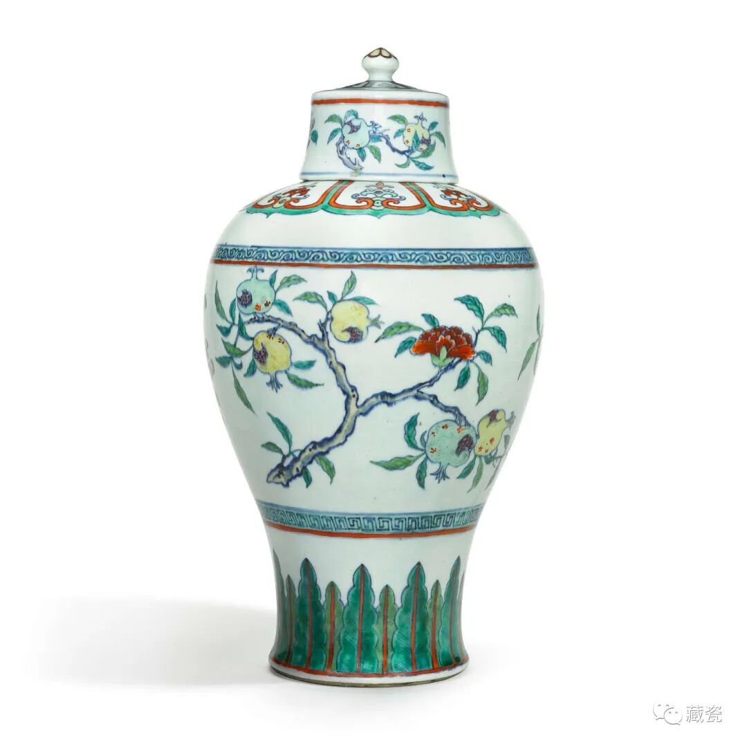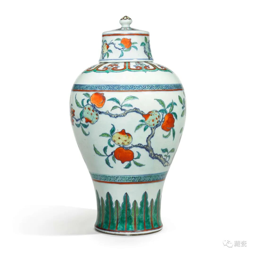 Lot10清雍正/乾隆闘彩三多纹梅瓶连盖