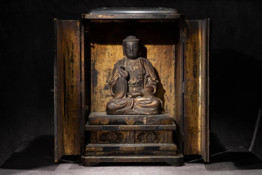 尺寸:佛像 H 38.8cm,2510g;佛龛 H 73.8cm,L 48.5cm,W 31.5cm,9628g
