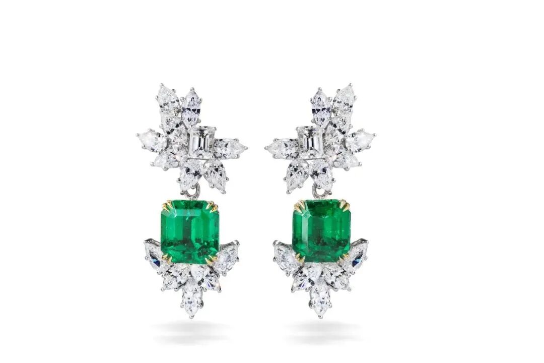 祖母绿耳环 主石3.0ct和3.04ct的 附Grs证书 产地:哥伦比亚 颜色:*muzo木佐矿 艳彩绿 vivied green,微油18K金钻石镶嵌,配钻4.4ct,金重8.44g