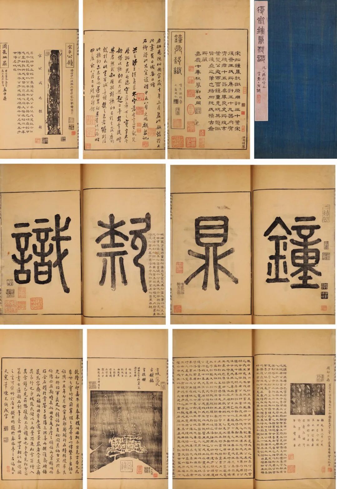 宋王复斋钟鼎款识一卷(宋)王厚之辑(吴熙载陶北溟递藏)拍品估价:110,000 - 120,000 人民币钤印:杨铎私印,杨氏珍藏,石卿,臣石卿印,商城杨氏鉴藏金石书画之章,熙载,熙载过眼,陶北溟,金轮秘笈之宝,翔鸾阁,翔鸾阁精鉴玺,陶第,陶氏金石,胡小琢藏,小琢,胡实君鉴藏印,遂性草堂胡氏所藏,胡春华印,胡春华字实君姚元之《竹叶亭杂记》载:“《复斋钟鼎款识册》,南宋秦氏熺物也,熺为桧子,其门客董良史为之摹绘成册,今归扬州阮制军元,刊本行世。”此本摹刻精审不苟,卷末朱彝尊、查慎行、金农等跋皆以手迹上板,板片道光二十三年毁于火,印本流传绝少。此本为杨石卿、吴熙载、陶北溟、胡小琢递藏,陶北溟题签,吴熙载、杨石卿题跋。拍品估价:4,000,000 - 6,000,000 人民币1. 北京,中国嘉德,2002 年11 月3 日,Lot.00372. 北京,苏富比,2013 年12 月1 日,Lot.0021