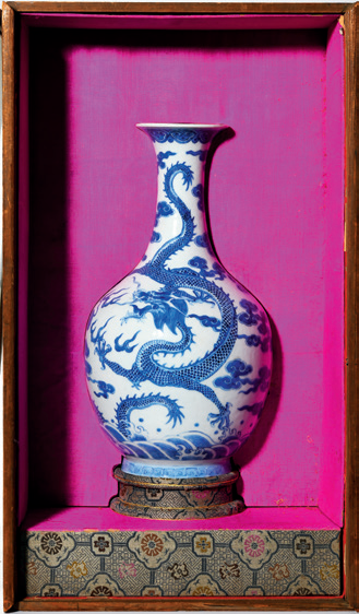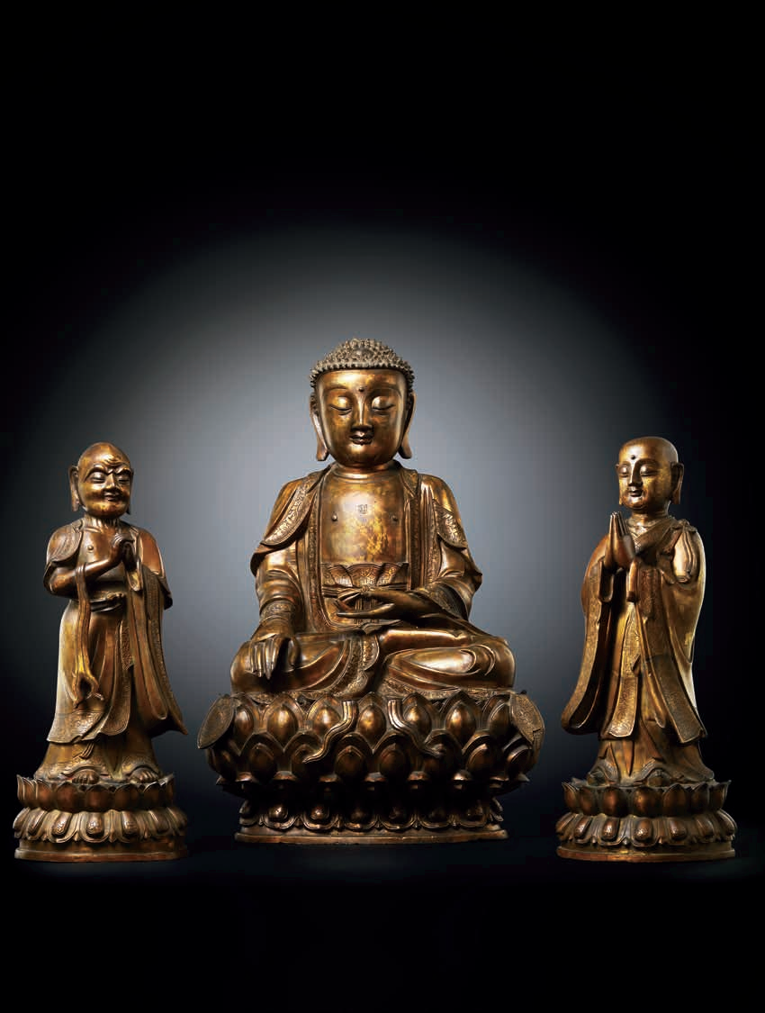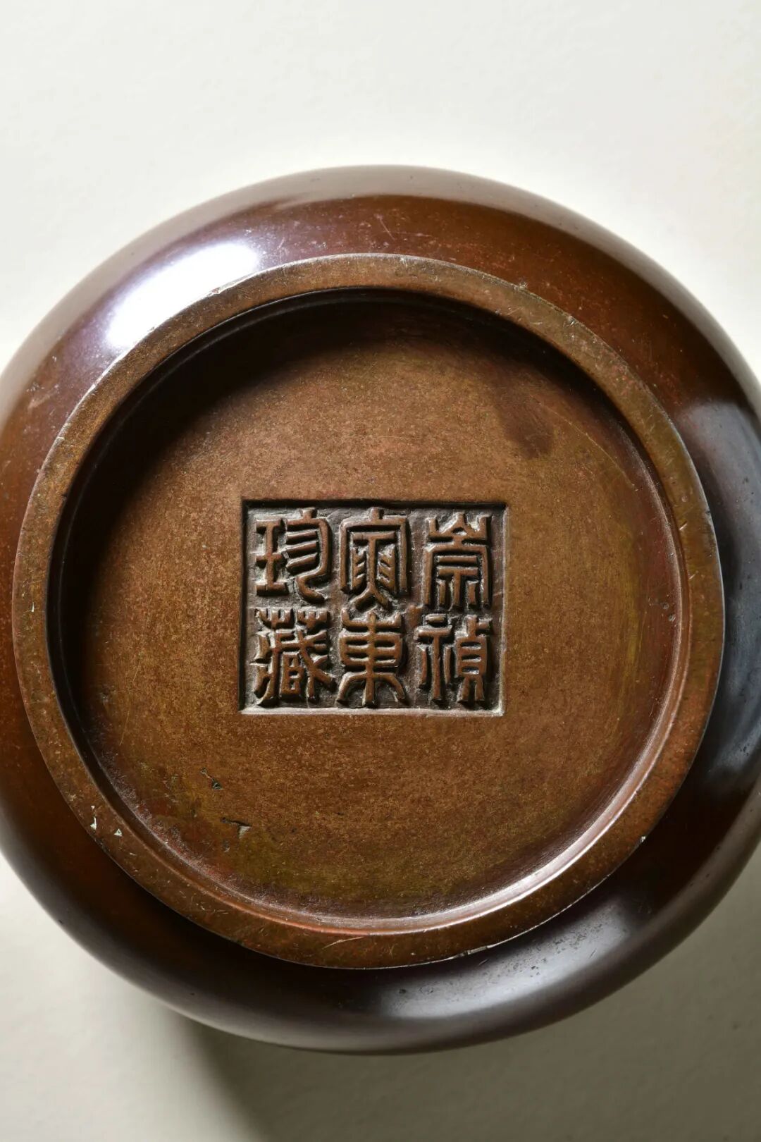 拍品估价:100,000- 150,000 人民币慎德堂为圆明园内的一组建筑,它位于圆明园九州岛岛清晏的西面,修建于道光十年,次年 落成,是道光皇帝在圆明园内的一处生活行宫, 晚年主要生活在此。以“慎德堂制” 款为代表的堂名款在道光年间极为盛行,就当时水平而论,制作堪称精致。楷书底款,款识以侧锋书写,字体秀丽,笔道如刀尖斜刻一样有力,此类款识中,有青花款,也有红彩款。道光以后咸丰朝官窑瓷器款识的书写,也继承了这种工整的侧锋书体。本件「慎德堂制」款青花云龙纹瓶,制作严谨规范,造型端庄秀丽,纹饰绘制精致细腻,气势不凡,兼之胎釉俱佳,青花发色完美,实乃道光年间不可多得的精品。且来源可靠,传有序,更应珍视。拍品直口,筒状长颈,溜肩,长圆形腹,腹下收敛,圈足,足底书红彩「慎德堂制」四字二行楷书款。造型典雅规整,胎体洁白细腻,釉面光亮,肥厚温润。通身满饰青花,青花发色与嘉庆青花相仿,淡雅宜人,呈色稳定。口沿绘一圈如意纹,足颈处为海水纹,主体绘制苍龙教子图,两只苍龙蜿蜒盘踞于瓶颈、腹各部,头生双角,鹿角竖直,长须向两侧探出,怒目圆睁,青花点睛,炯炯有神,龙身矫健盘旋,龙鳞坚实细密,龙爪犀利,与瓶腹下海浪纹浑然一体,苍龙破海,气势威猛。周身环视祥云,交叠悬停,气韵生动,填彩饱满,渲染匀称,愈显得神龙腾云驾雾,皇家气势神圣 不可侵犯。龙鳞成整齐的点状,体现了这一时期龙纹的绘制特点。拍品估价:400,000 - 600,000 人民币1.《故宫唐卡图典》P302(图256)、P328(图275)、P329(图276)此幅17世纪织金锦无量寿佛曼荼罗,中心为宏光无量寿佛,双手禅定,捧着盛有长生甘露的金瓶。其四方四隅环绕八尊形象一致的无量寿佛。根据经典,八尊无量寿佛各有不同的名称,正东方向为金刚无量寿佛,其余各尊依顺时针方向,分别是:东南方向的德行无量寿佛;正南方向的珍宝无量寿佛;西南方向的智慧无量寿佛;正西方向的莲花无量寿佛;西北方向的不动无量寿佛;正北方向的智行无量寿佛;东北方向的普明无量寿佛。以此构成一个完整的曼荼罗世界。对无量寿佛的崇拜是清代宫廷中最重要的信仰活动之一,源于对在世生命延长的渴望,并能接引修持者往生西方极乐世界。因数字“九”正暗示“长久”之意,故清宫常以9尊或9的倍数供奉尊神,如乾隆二十五年(1760年),正值乾隆帝五十岁大寿,宫中一次装裱无量寿佛唐卡81轴为寿礼,又如乾隆四十五年(1780年),六世班禅进贡给乾隆帝一套九尊无量寿佛唐卡。而此件无量寿佛九尊曼荼罗正是清宫这种供奉需求的反映。图中无量寿佛头戴五叶宝冠,顶束高髻,方脸阔鼻,面相端正温肃;佩大耳铛、项圈、璎珞、臂钏和手镯,脚镯等宝饰。身着红底茶色天衣,双手结禅定印,手心捧一宝瓶,结跏趺坐于束腰须弥座上。佛教题材的织绣艺术品历来是织绣艺术品收藏,以及喜马拉雅艺术品收藏中,稀缺又不可或缺的品种。此幅17世纪织金锦无量寿佛曼荼罗,石青色地,四角织五彩如意云纹,中心织九尊无量寿佛曼荼罗,莲纹叶瓣、莲瓣圈、衣纹褶皱、火焰纹轮廓、云纹外廓等处,多以金线织就,经三百多年依然光彩夺目,足见其珍贵。尺寸:口径 10.3cm;高 5.5cm;重量 1030.3克拍品估价:600,000 - 800,000 人民币此炉作蚰耳簋式,造型洗炼,圆浑端庄,其形厚重,转角圆润,分量沉重坠手。炉平唇微侈,高束颈,垂鼓腹,圈足外撇。双蚰龙耳出颈曲折下收于腹部。蚰耳浑圆肥美,粗细适中富于变化。炉身光素无纹,包浆清润,蟹壳青皮色泽,古朴自然。炉底中央方框内有减地阳文「崇祯寅东珍藏」六字篆书款,字体规正,清晰有力。此炉款「寅东」应为明末清初官员柳寅东。柳寅东,字凤詹,四川梓潼人。崇祯四年(1631)进士,授广东巡按御史,官至顺天巡按。降清,官至顺天巡抚。清宫《石渠宝笈》著录宋人祁序《江山放牧图》上,钤有“西蜀柳寅东凤詹图书”鉴藏印,知其明末时曾为柳寅东旧藏,可证柳寅东精于鉴藏。目前所传世的铜炉中,广为流行的年款炉即是「大明宣德」款,在清代也有乾隆、雍正等年号炉,但崇祯年款并不多见,偶有一二也在市场上价格不菲。根据史料记载,玩炉之风最盛行的当属明代嘉靖至崇祯时期。此时的文人多参与到铜炉的设计与铸造中,将炉体的造型、线条的提炼推向极致。故有学说称,在明代晚期时才是真正的顶峰,而私款铜炉更为集艺术美与工艺美于一身的顶级之物,此件更署崇祯本朝年款,尤显珍贵。