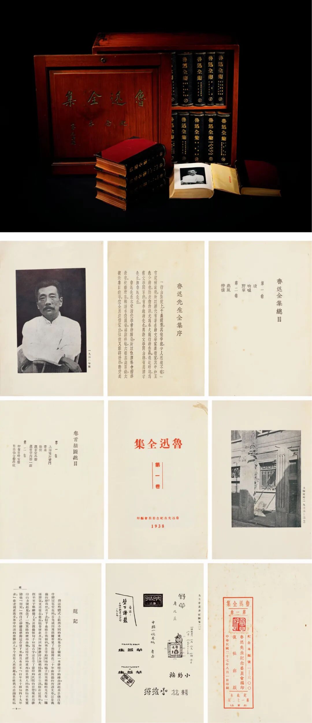 拍品估价:850,000 - 900,000 人民币鲁迅先生逝世后不久,为了尽快出版《鲁迅全集》,1937年初,在许广平和好友许寿裳、台静农、胡愈之等人的筹划下,成立了以蔡元培、茅盾、周作人等人为主的《鲁迅全集》编辑委员会。1938年8月,20卷本《鲁迅全集》由上海复社正式出版发行。蔡元培先生题写书名,并亲自撰写《征订“鲁迅全集”精制纪念本启》和《鲁迅先生全集序》。1938年出版的《鲁迅全集》推出甲乙丙三种版本,其中甲种纪念本是红布烫金,属精装本,售价50元;乙种纪念本是皮脊烫金,整套装楠木箱,编号印制200套,非卖品;丙种本为平装本,开本和正文与纪念本相同,封面大红纸面布脊精装,正文用新闻纸印刷,售价为8元。据资料显示,已知的纪念本带编号刷金的《鲁迅全集》,存世只有几部,记述如下:上海鲁迅纪念馆一套,编号为001,为许广平先生捐赠。中共上海地下党领导人潘汉年一套,编号为002。毛泽东主席一套,编号为058。北京鲁迅博物馆一套,编号为017。绍兴鲁迅博物馆一套,编号为024,为许寿裳女儿捐赠。中国国家博物馆一套,为许广平先生捐赠,不知编号。拍品编号为172,拍品包含中央人民政府政务院至副主席荣毅仁之父荣德生信封一枚。并附原书箱,品相良好,弥足珍贵。