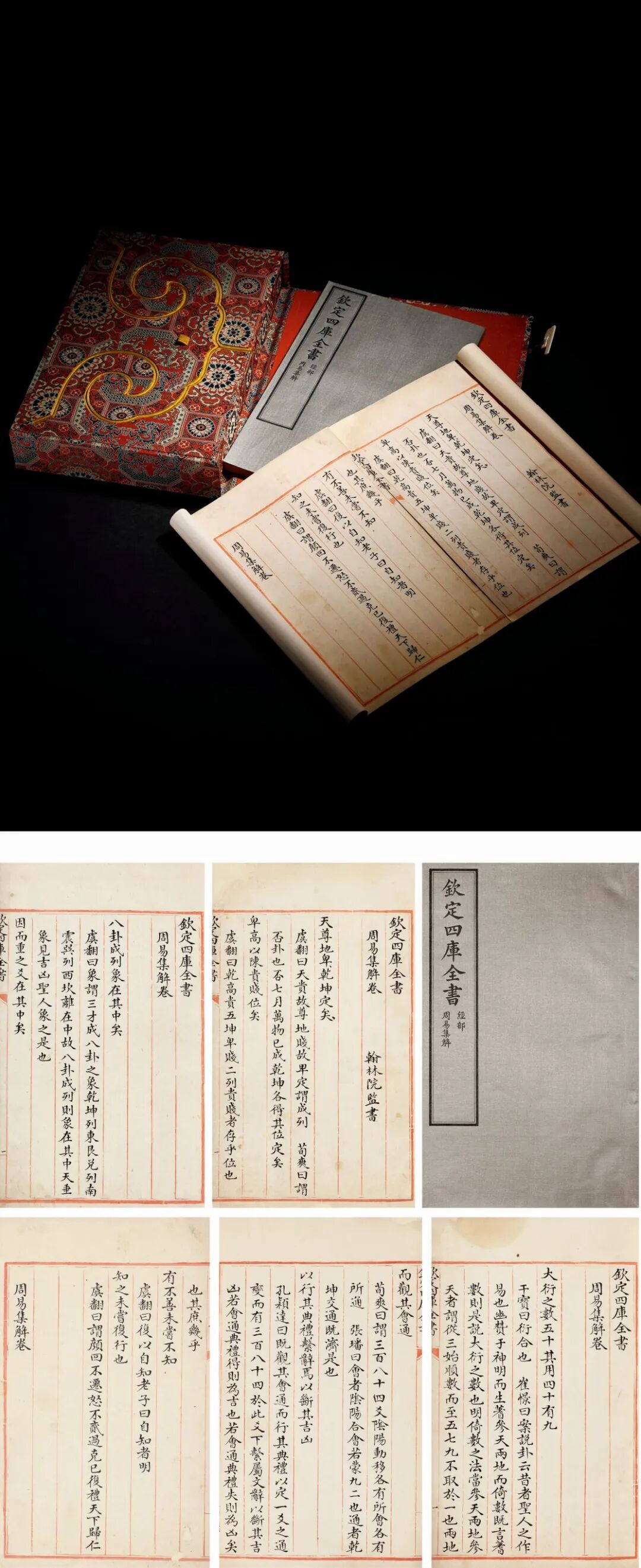 本场古籍四百二十余件,由同一藏家、郦承铨旧藏、钱太初旧藏、小残卷斋旧藏,四个专题为主体。郦承铨旧藏以清末民国宣纸本珂罗版为主,多有墨笔长跋;钱太初旧藏四十余件,均为钱氏后人提供,包括明刻白棉纸本、清代精刻本、稿抄校本等品类;小残卷斋旧藏三十余件,均为早期金石类文献,多乾嘉时期初刻罕见之本。专题之外重要拍品有北宋元丰八年崇宁藏、民国二十七年《鲁迅全集》初版编号本、明刻三色本《花营锦阵》、清乾隆翰林院监书本《周易集解》等。拍品估价:280,000 - 300,000 人民币乾隆三十八年(1773)二月,《四库全书》正式开始编修,以纪晓岚、陆锡熊、孙士毅为总纂官,陆费墀为总校官,下设纂修官、分校官及监造官等四百余人。名人学士,如戴震(汉学大师),邵晋涵(史学大师)及姚鼐、朱筠等亦参与进来。同时,征募了抄写人员近四千人,鸿才硕学荟萃一堂,艺林翰海,盛况空前,历时十载。至乾隆四十七年(1782)编纂初成,乾隆五十八年(1793)始全部完成。耗资巨大,是“康乾盛世”在文化史上的具体体现。