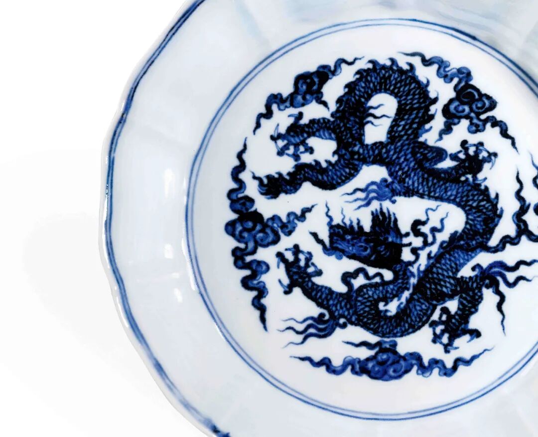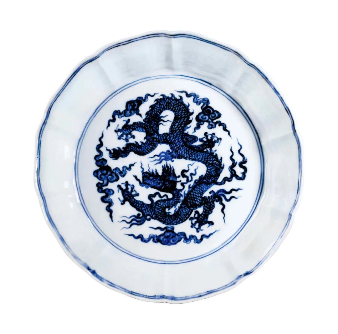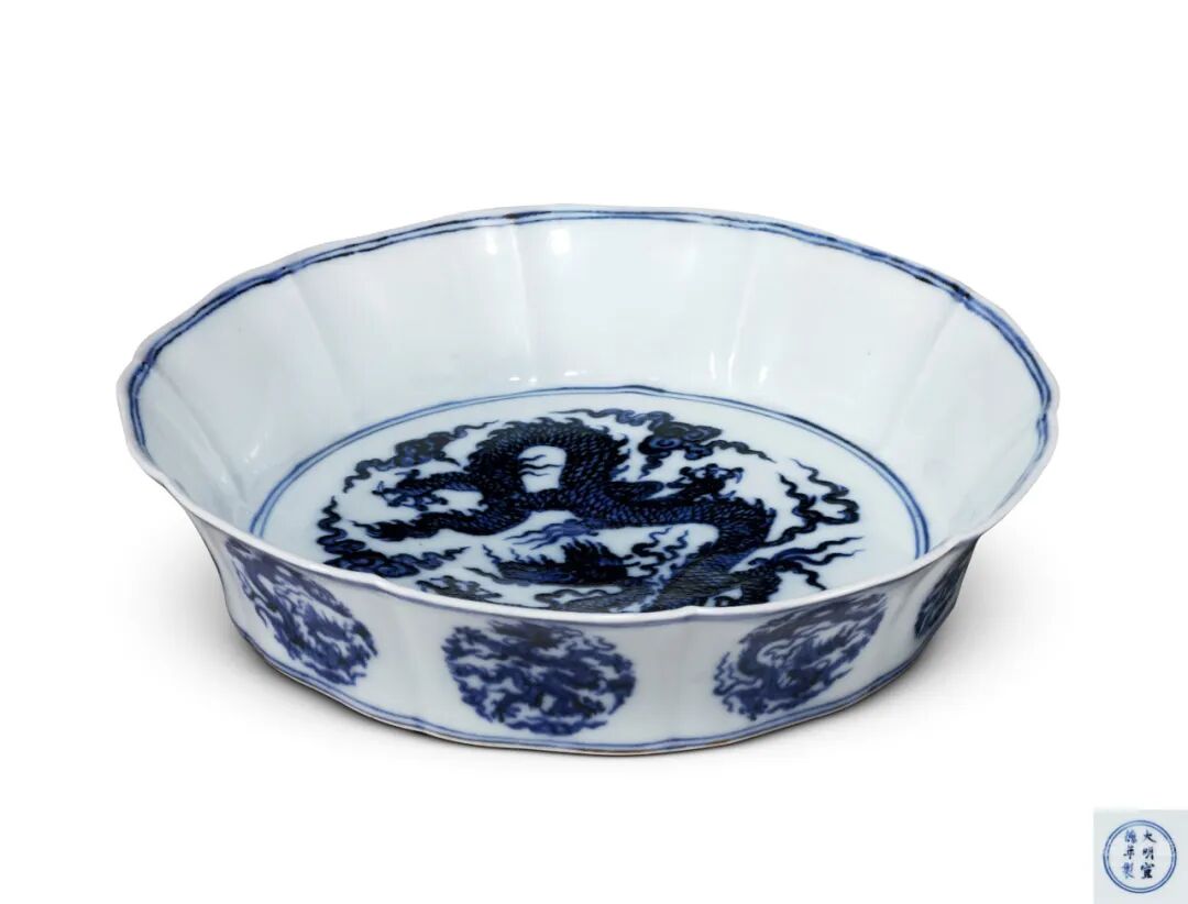 1.Thomas Arthur Clarke(生.1871)上尉及夫人 Emmeline Clarke, 本姓 Matthews(逝.1962) 收藏,Springfort Hall,马罗,科克郡,爱尔兰, 此后家族传承2.Lillian Mabel Hebbert, 本姓 Matthews(1891—1976)收藏,此后家族传承3.Patrick Robert levers (1940-2015)中校收藏4.觉是轩(Priestly & Ferraro),伦敦5.纽约苏富比,2017年3月14日,Lot0008拍品估价:8,000,000 - 10,000,000 人民币本品为宣窑之旷世隽品,妙作十瓣花式,造型端庄秀雅,花瓣边沿于中微敛,颇似蜀葵,故常名葵式洗。蜀葵是宋人陆游笔下的心心相印:“翩翩蝴蝶成双过,两两蜀葵相背开”;是明人张翰笔下的赤诚忠心:“蜀葵花草干高挺,而花舒向日……丹心则一,故恒比于忠赤”;亦是清人钱宛鸾笔下的一笑百媚生:“织云制粉,裁霞剪彩……傲杀杜鹃,不输芍药,蜀地笑芙蓉。”宋人取其形入瓷,官窑、哥窑等时有烧制葵瓣洗之形。已知宋器十棱洗散见于北京故宫博物院、台北故宫博物院等处,拍卖市场上偶有得见。宣德时期承继这一制式,惟足内不再绘五爪飞龙,代之以宣德六字款。此件即为其中精品。其胎体细腻洁白,釉质莹润亮青,青花幽菁沉着。内底青花双圈内绘一五爪降龙于祥云之间,龙首威武昂扬,龙身舒展修长,雄姿遒劲,矫健勇猛,有气吞山河之势。外壁绘团龙,升龙与降龙相间,游龙矫健,威势凌人。采用小笔渲染填色,兼有淡描勾线与渲染笔法,与幽深之青花相合,微泛浓妍之锡光,凸显宫廷龙纹的霸气震慑之感。![]()