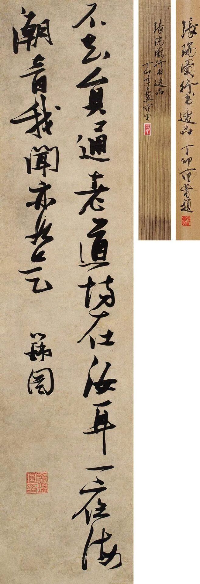 展览:“白毫墨涛·张瑞图书法特展”,中共晋江市委员会、晋江市人民政府主办,晋江市博物馆,2021年12月25——2022年2月15日。著录:《白毫墨涛·张瑞图书法特展》第55页,晋江市博物馆编,2021年。说明:濑户寿太郎藏。濑户寿太郎为日本味之素株式会社常任顾问、理学博士。改革开放初年,曾多次前往中国,为推动中日贸易做出了重要贡献。濑户先生雅好书画,与多位中国书画家如范曾、启功友善,1987年范曾旅日,曾有《游北海道感怀题赠濑户寿太郎画》一诗,可证交游。此件作品,有范曾题盒、题签,也是两人友谊的见证。拍品估价:300,000 - 500,000 人民币《当代艺术与潮流》专场将呈现一百余件艺术精品,当代名家与潮流艺术交相辉映:隆重推出毛焰2011年作品《托马斯肖像2011.NO.1》,时隔近10年再现拍场;周春芽极具代表性的大尺寸雕塑作品《绿狗》首度亮相;“香港潮流教父”刘建文致敬达·芬奇《救世主》的雕塑玩偶;超限球鞋“Nike Dunk四大城市限定”…为不同年龄藏家带来丰富选择。来源:中国嘉德,2013年11月16日 Lot.0169 亚洲私人收藏拍品估价:3,800,000 - 4,800,000 人民币