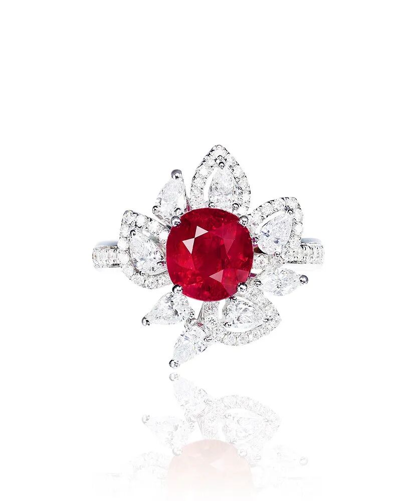 18k白金镶嵌,配镶钻石0.668克拉钻石0.377克拉,MQ0.109克拉,戒面尺寸约19.6*16.9mm,主石尺寸约8.1*7.6mm,戒圈尺寸16mm