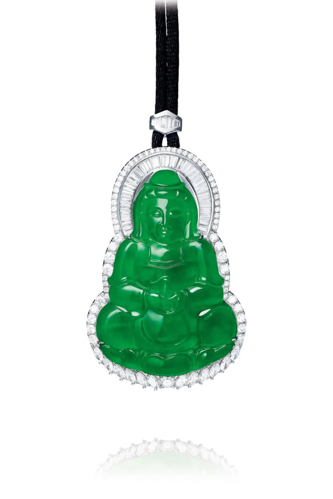 18K白金镶嵌,吊坠尺寸约65.3×42.9mm,主石尺寸约54.5×37.2mm