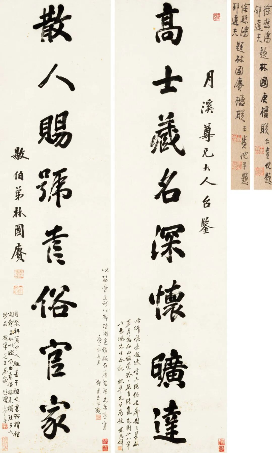 1.林惠祥(1901-1958),福建晋江人。毕生从事人类学和考古学研究,建议在厦门大学成立了我国第一所人类学专门性的博物馆。我国著名人类学家、考古学家、民俗学家、民间文艺理论家。2.王贵忱(b.1928),辽宁钱岭县人。是中国著名的古文献版本学家、古钱币学家、金石学家、历史学家及书法家,是中国当代学界的一位通才式学者。3.韩槐准旧藏。韩槐准(1892-1970),字位三,生于海南文昌。蜚声海内外的考古学家、历史学家、种植专家。曾任北京故宫博物院瓷器部顾问,中央文史馆馆员。被誉为“研究中国古外销陶瓷第一人”。4.徐悲鸿(1895-1953),江苏宜兴人。中国现代画家、美术教育家,景星学社社员。擅长人物、走兽、花鸟,与张书旗、柳子谷三人被称为画坛的“金陵三杰”。5.郁达夫(1896-1945),原名郁文,字达夫,幼名阿凤,浙江富阳人,中国现代作家、革命烈士。林国赓所书《行书八言联》为著名考古学家、植物学家韩槐准的珍藏,徐悲鸿、郁达夫题跋,王贵忱题签。拍品估价:200,000 - 300,000 人民币本次中国近现代书画专场精心甄选出380余件拍品,其中将各具特色的名家收藏,以专题形式呈现出来,花开天目苕波绿-程良及友人作品专题,私人藏画、张庆重藏画、尹口羊藏画等专题,或同一上款,或同一藏家收藏,丰富多元。拍品估价:800,000 - 1,200,000 人民币