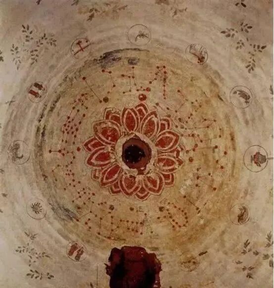 辽墓顶部十二宫星图其头部似羚羊,身体与尾部像鱼。佛教经典以其比喻菩萨以爱念缚住众生,不到圆满成佛终不放弃,又因"摩羯以肉济人",后来成为佛教圣物。据考古材料看,最早的摩羯鱼形象,出现于隋代李和墓石椁盖上的刻绘 。该形象最早出现大约在东晋,随佛经传入中国,顾恺之《洛神赋图》中已经出现摩羯形象。