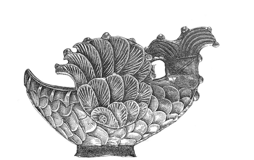 五代 耀州窑天青釉飞鱼形水盂关于五代耀州窑天青釉摩羯(飞鱼)形水盂的使用功能仍有不少研究讨论。这件藏品对于研究历史上中外及中国各民族间文化交流的状况提供了非常宝贵的实物资料。五代耀州窑摩羯形水盂,高9.3厘米,长14厘米,宽7.4厘米。水盂胎体纯白,胎质细致坚硬,器内隔成前后两室,器内外均施青釉,釉色清淡,晶莹素洁,足根无釉。