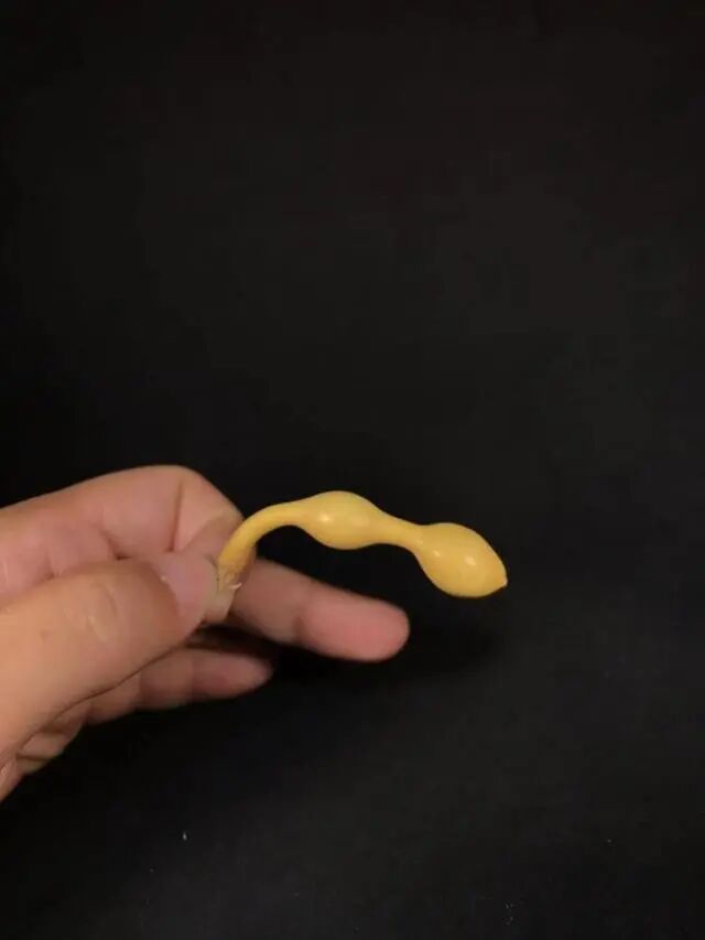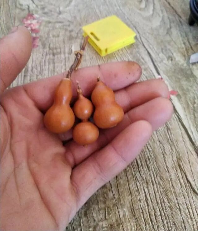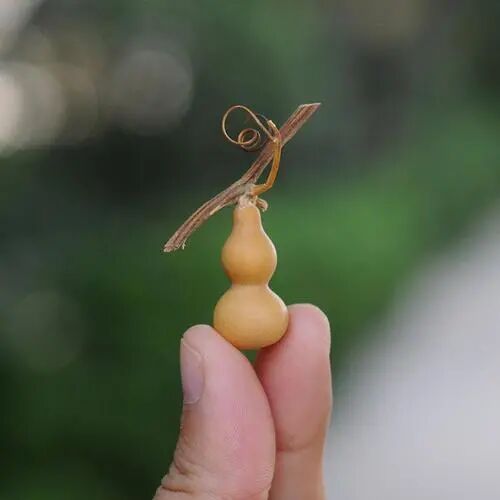 以上的六个特点只有全部满足,才能称之为草里金,另外现在的文玩市场上,也有一种尺寸很小的手捻葫芦,却不能称之为草里金,因为这种手捻葫芦,并不是自然生长而成的,而是在生长过程中打了抑制生长的药剂,那么这样的葫芦怎么分辨呢?