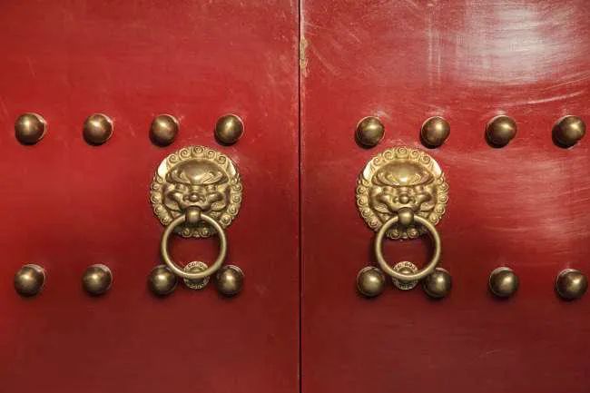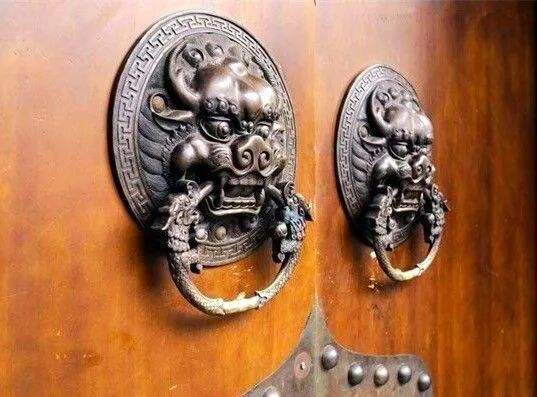 明代,官方更是对官员使用铺首立规设矩。不同等级,铺首材质相应不同:公主府第正门用“绿油钢环”,公侯用“金漆锡环”,一二品官用“绿油锡环”,三至五品官用“黑油锡环”,六至九品官用“黑油铁环”。