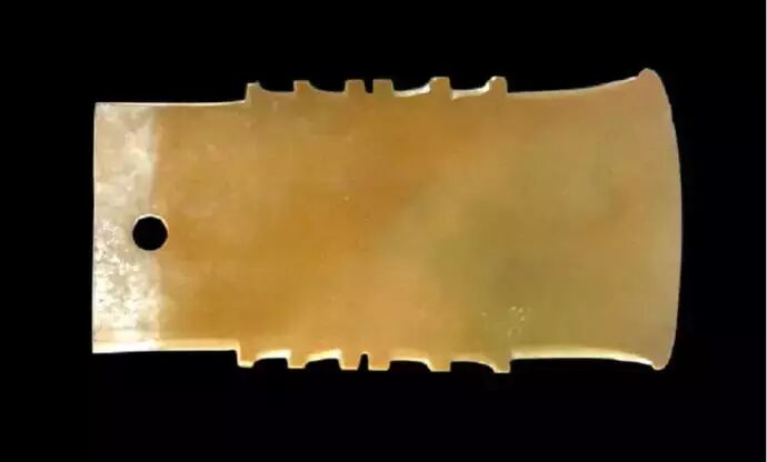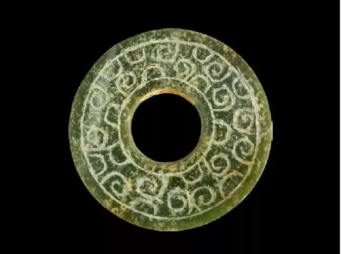 良渚文化玉器,直线纹是由笔直的阴线构成,细曲线纹是短而细的线条错落连接而成。两种不同做工的线条在同一器物上并存,就是鉴定其真伪的根据。