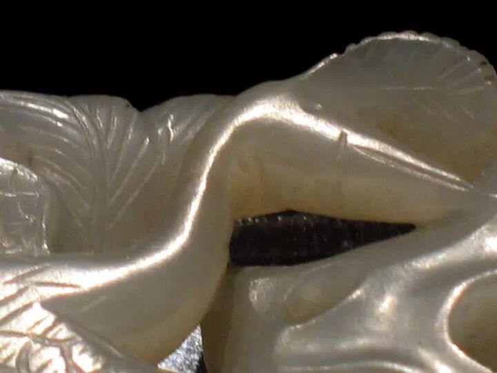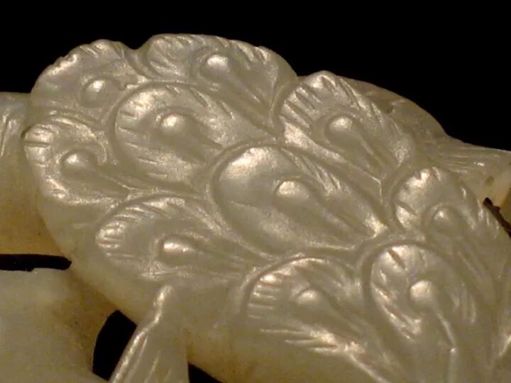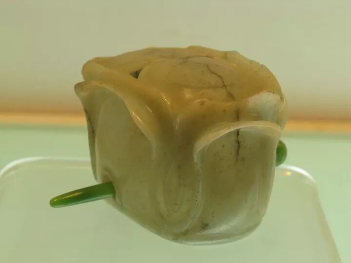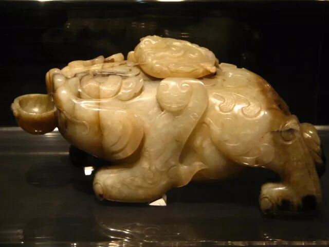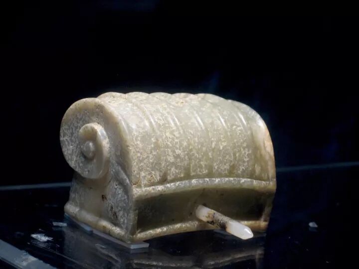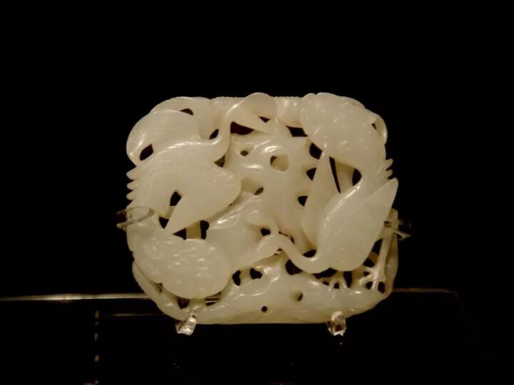 首都博物馆地处京畿,又是展现北京历史的一扇窗,因此藏品级别和出处有序是其强项。馆藏中古时期玉器从唐始,至元而落,很多文物都是出土确切的标准器,如唐代史思明墓、金代乌古论窝论墓、清代黑舍里氏墓等,为我们学习提供了强有力的参考。此玉为青花料,从用料特征看,符合唐代部分常见用料,同时也让人联想到何家村窖藏出土的几条斑玉带挎。隐约记得背面有牛鼻孔两对,如馆藏定名可知,应为镶嵌件。从图片上可以清晰地看到其上的一些圆窝儿状处理,这和后世金元时期“秋山”题材的工艺痕迹有贯通。鹿取卧姿,头顶灵芝状角,鹿角上用平行的粗阴线装饰,根部有一些桯钻小孔,耳缘、尾部用细阴线表示毛发,身体用隐起法表现鹿的肌理。背面平素,身体上下各有三对对钻的牛鼻穿,用于镶嵌或缀结。由此可知,此件并非标准圆雕件。这种造型的玉鹿俗称“肿骨鹿”,始于唐代,如唐代宽城鹿纹菱花形银盘、内蒙古赤峰喀喇沁旗出土鹿纹盘、燕京云居寺唐塔上的鹿纹等。比较起来,此器尚存文弱恬静,写实过于夸张,虽出自清墓,但专家断为宋物应是中肯客观的。这件作品应是中古时期的上乘之作。▲宋绾发玉冠,1970年江苏省吴县灵岩山毕沅墓出土冠为古代男子束发之物,唐代盛行。此发冠白玉质,留有出土锈斑。冠面雕琢重叠的莲花瓣,互相对称。正面下部琢有一圆孔,与冠背圆孔相对,后配白玉圆簪贯通其中。整个器物线条圆润,琢磨精细。在1970年江苏省清代墓葬里出土了一顶与此类似的玉冠,经专家鉴定也是宋物,特别是两者的底部圆孔外围都琢一圈减地阳线,让人联想到唐宋蹀躞带饰或其他饰品上的古眼处理。对于这件玉器,博物馆没有说明其出处,但从表征判断应为出土物,青玉质,梁为七,预示其当初的使用者级别不低。虽周身简素,但从细部的制作工艺和打磨看,可谓一丝不苟。孔雀在古代属珍禽,是王室的私宠,以其绚彩美姿很早就进入了人们的视野。到了后中古时期,更多地出现在玉雕作品中。此件玉雕正面是双孔雀,上下交错依附在山石旁。以单阴刻线琢孔雀羽毛、尾翎。背面光素,但有琢磨遗痕及四组对穿孔,看起来可供缝缀。蝮(为传说中龙生九子之一,习性好水)口衔小匜,上有孔,腹部中空贮水后可流入匜中,背上有盖,上浮雕螭纹,通体碾琢卷毛,关节部位饰以火焰纹,器形厚重朴拙,宗两汉至魏晋风格,又加入了后世的理解和创新。圆盒顶部雕一对鸳鸯,相对而立,口胸贴合,以均匀的阴线刻画出冠、眼、羽毛等,盒为子母口,鸳鸯平剖为二,打开时分为两对鸳鸯。出土后仍光亮鉴人。玉盒出土于清代定亲王陵中,陵墓埋葬有长子永璜、三子永璋、五子永琪,此玉便是次子永璋的陪葬物。经专家分析,玉盒属宋代遗物。1969年在陕西西安唐代宫城遗址出土的“鸳鸯花卉纹玉盒”,其大体设计样式及题材韵味同这件藏品相若。往期推荐