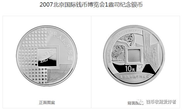 2007年到2016年,中国人民银行对钱博会银币单独立项。币面通过点线面的运用,黑与白、疏与密的对比,来传达鲜明的主题。币中央的镜面方孔,像一扇面向世界“窗口”,搭配着相应的钱博会会标。币面主图选择东、西方钱币文化中各个历史时期具有代表性的钱币,来反映并勾勒历代钱币的发展历程。