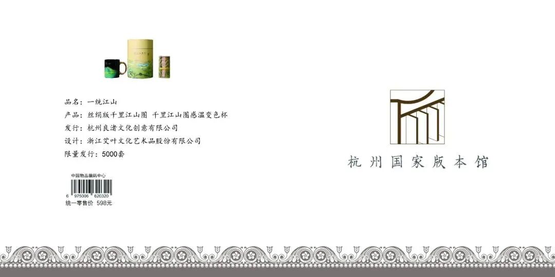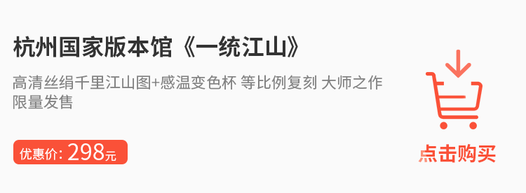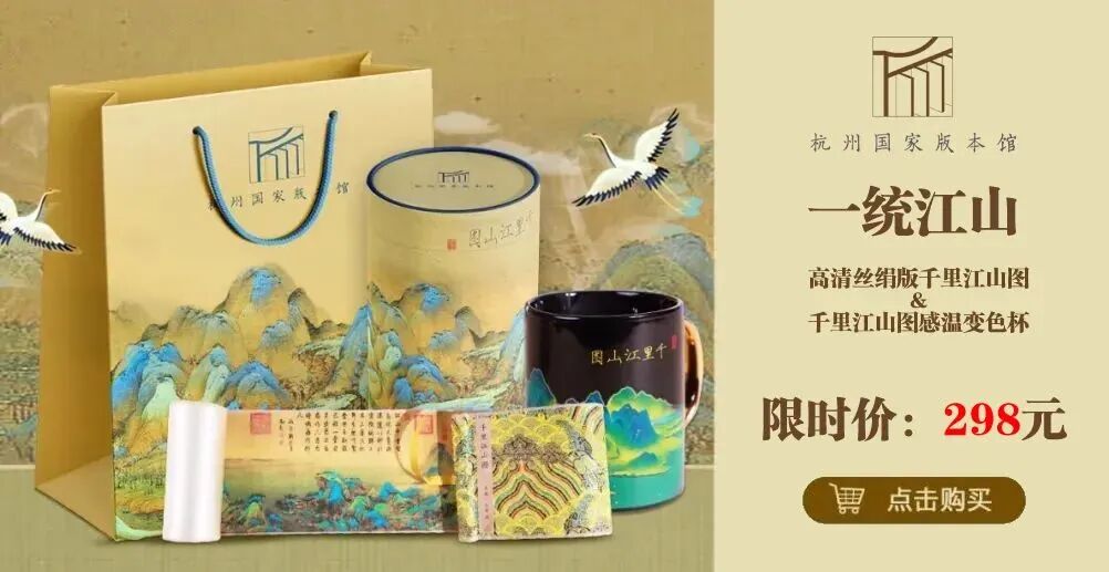 1.强强联手!杭州国家版本馆《一统江山》中,丝绢版高清复刻《千里江山图》由北京市印刷技术研究所倾情打造;千里江山图感温变色杯由景德镇御器研究院操刀创作。