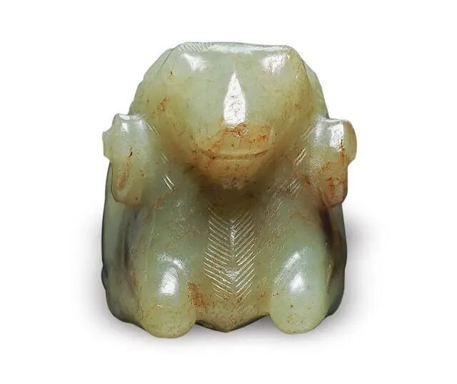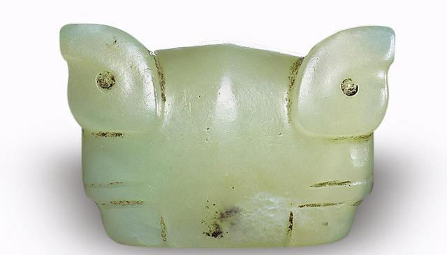 在玉器历史长河中,玉器工艺的图纹装饰最早出现在新石器时期,早期主要是一些简单的几何纹饰,直至新石器时期晚期出现一些形制简单的动物形象,如龟、鸟、兔、虎头,等等。新石器时期动物造型玉器大多刻画简单抽象,体现出先民对于自然界认识的懵懂和畏惧。