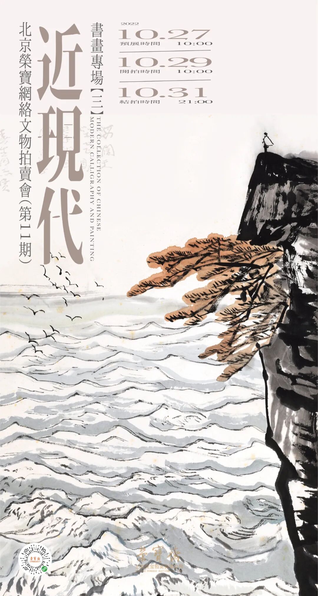 北京荣宝网络文物拍卖会(第11期)·近现代书画专场(三)将于10月27日10:00—10月29日10:00开启线上预展,并于10月29日10:00开拍,10月31日21:00结拍。