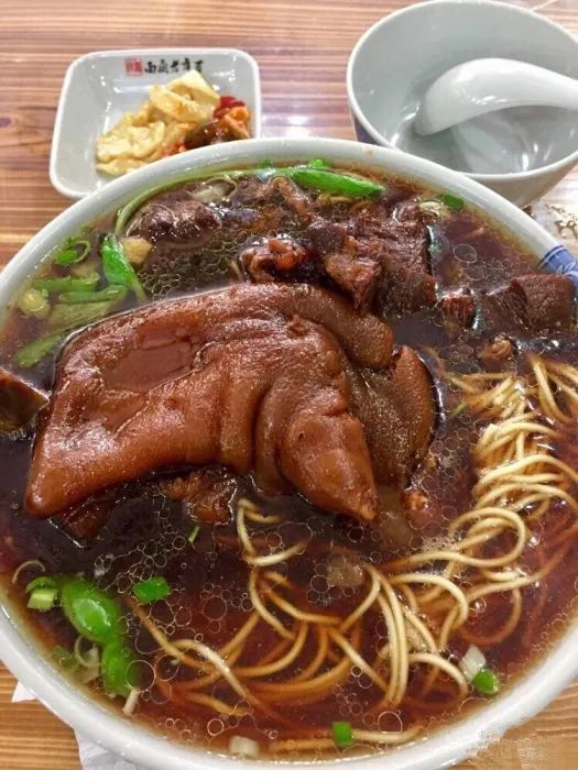 它采用猪五花肉加调料经宽汤焖制而成,焖肉的个头很大,炖的酥烂如豆腐,甜甜的面汤,味鲜汁浓,颇受食客的喜爱。