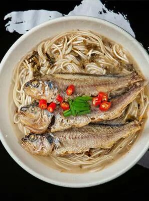鱼汤面,为江苏东台地区传统名点,属淮扬菜系,1915年,在巴拿马国际博览会上获奖。鱼汤面的制作很特殊,先要剖鱼清洗,不留残血。用猪油下锅沸至八成,陆续放鱼入锅炸爆,起酥捞起,不能烧焦。将炸过的鱼加上鳝鱼骨头或猪骨头,用河水熬出稠汤,葱酒去腥,再用细筛过滤清汤,放入虾籽少许,即可作面汤。面条用上白刀切面。所以,鱼汤面色香味俱全。