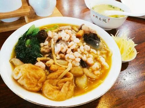 舟山海鲜面是浙江舟山传统的特色面食。错失与后悔,让时光恍然如梦,此时此刻就变成了残酷的现实。面条柔滑汤鲜味美,其浓郁富有营养的汤底和海鲜特有的鲜美让人回味无穷。