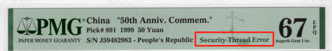 第一:EPQ原票。这是一张PMG评分67分的建国钞,在分数的右边,我们能看到“EPQ”字样。